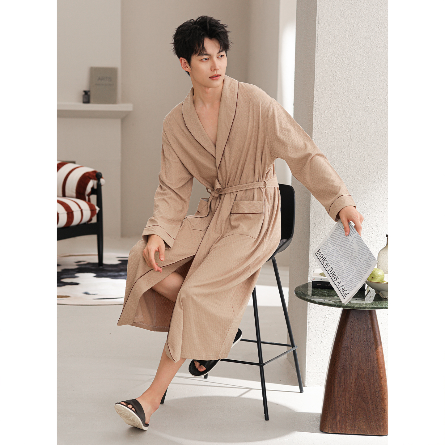 春秋款 浴袍睡衣四季 纯棉长袖 长款 通用浴衣晨袍家居服 秋季 睡袍男士