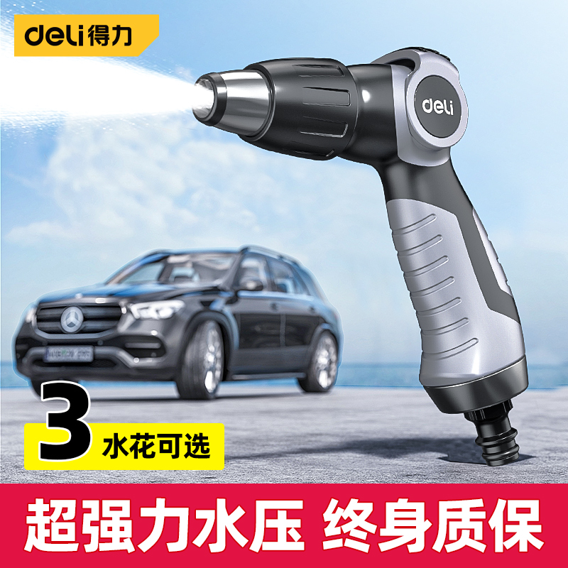 得力高压水枪洗车家用冲洗院子增压喷头接自来水伸缩软管强力洗地