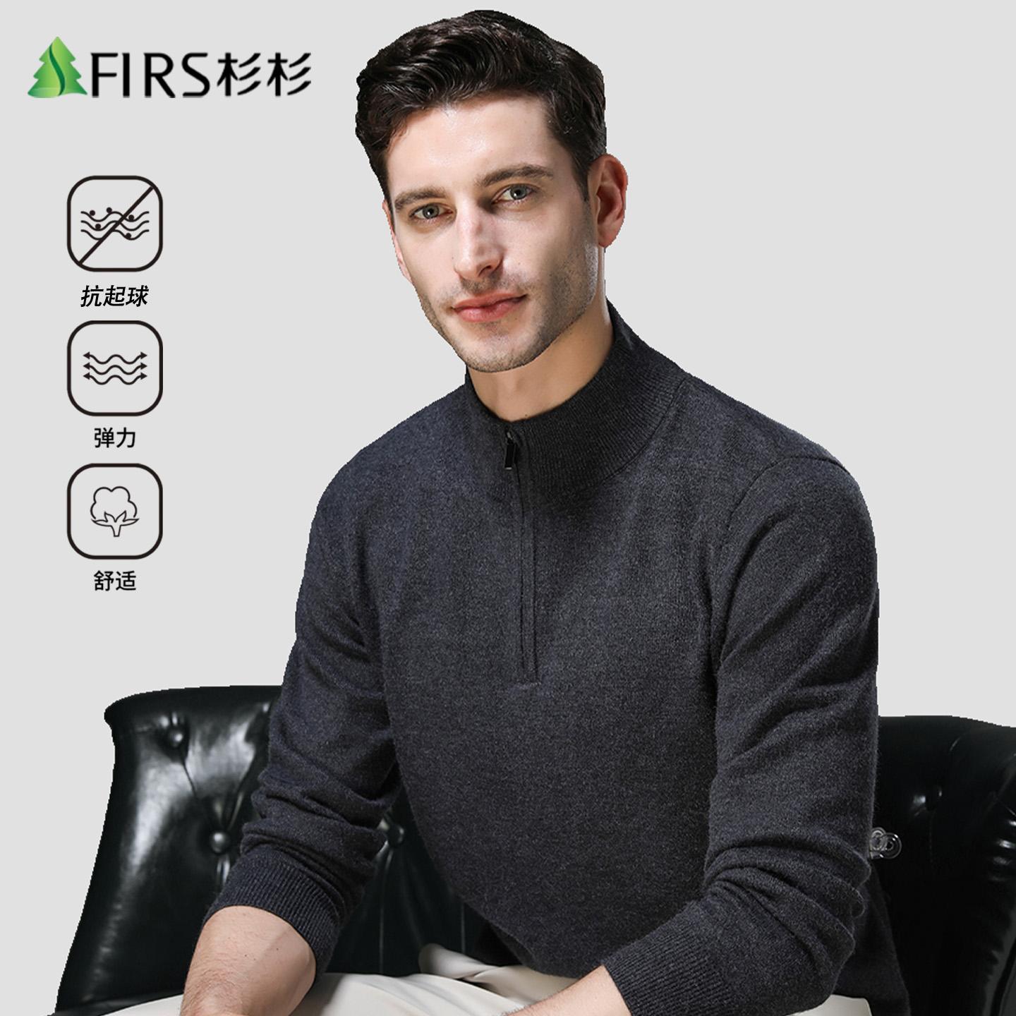 含羊毛秋冬毛衫 红豆毛衣男款 纯色打底加绒保暖针织衫 太阳绒