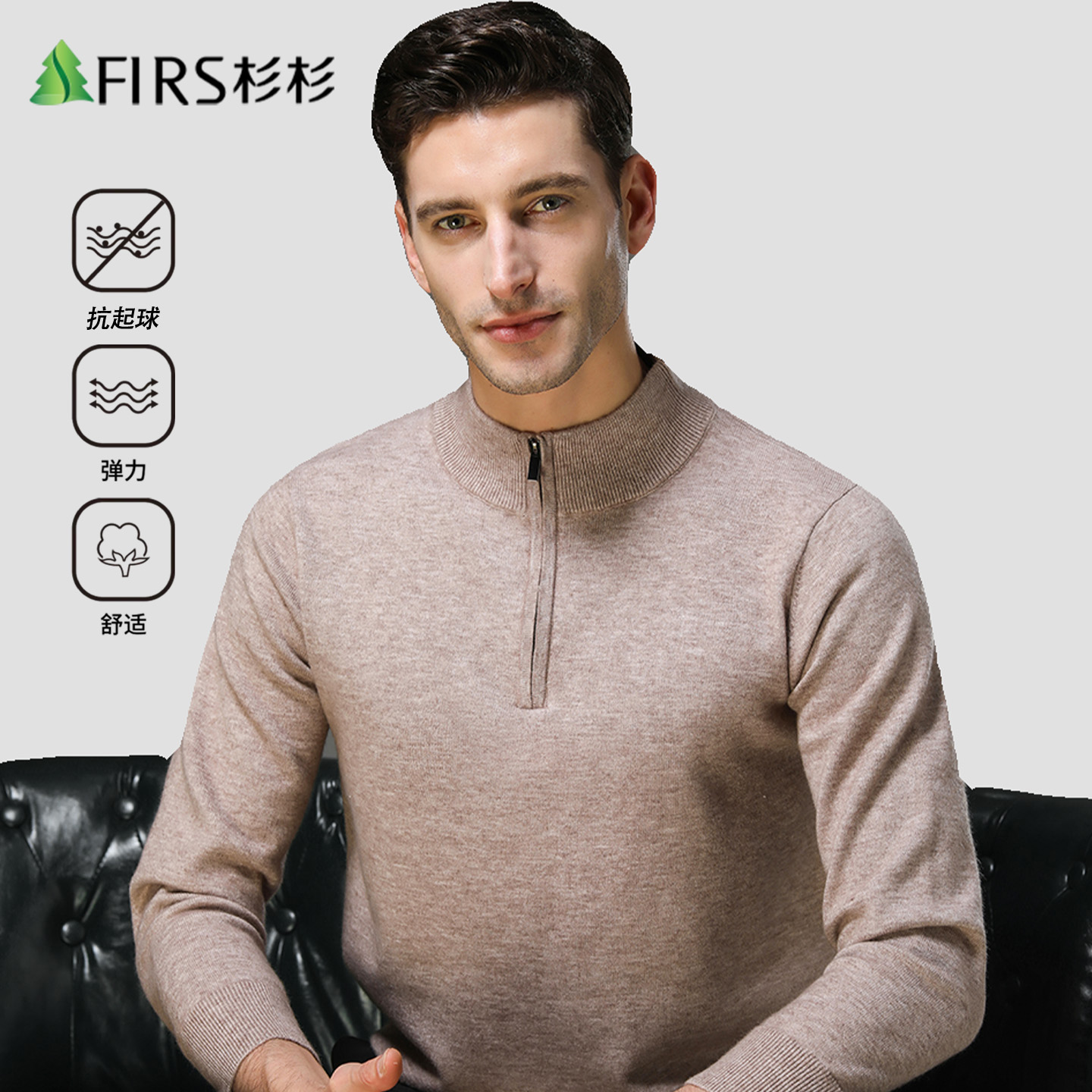 毛衣男士 男装 外套秋季 上衣夹克修身 长袖 Jeep吉普拉链立领针织开衫