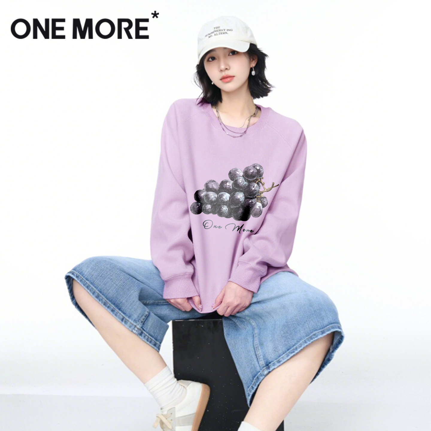 宽松慵懒风圆领上衣早秋穿搭Y 秋季 one more灰色卫衣女士2025新款