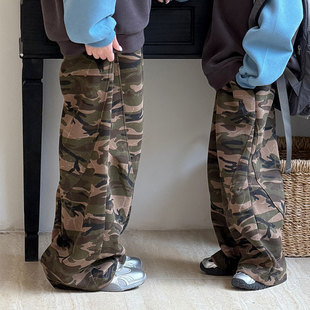 韩版 亲子装 子母子百搭运动裤 母女迷彩裤 宽松 一家三口四口休闲裤