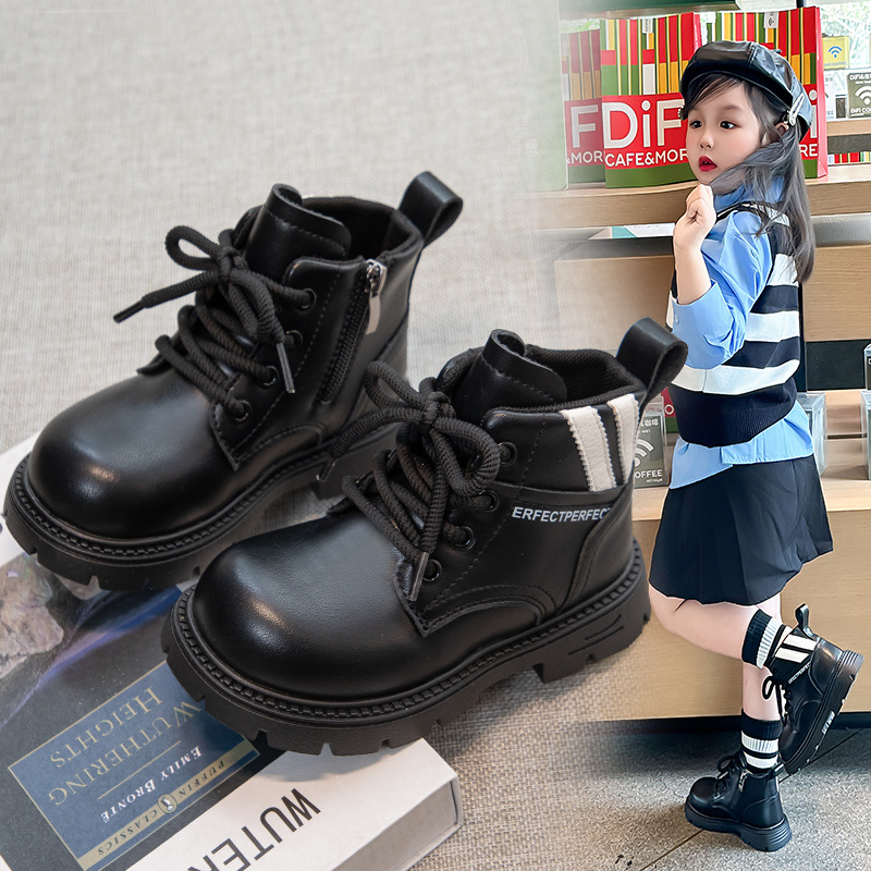 靴子 中帮休闲皮靴加绒英伦风通勤工装 马登黑色马丁靴男款 秋冬季