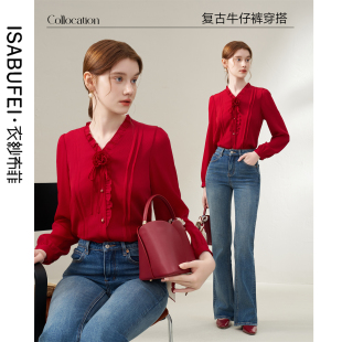 浅蓝温柔风设计感 通勤风长袖 衣纱布菲云茉2025秋新款 温柔翻领衬衫
