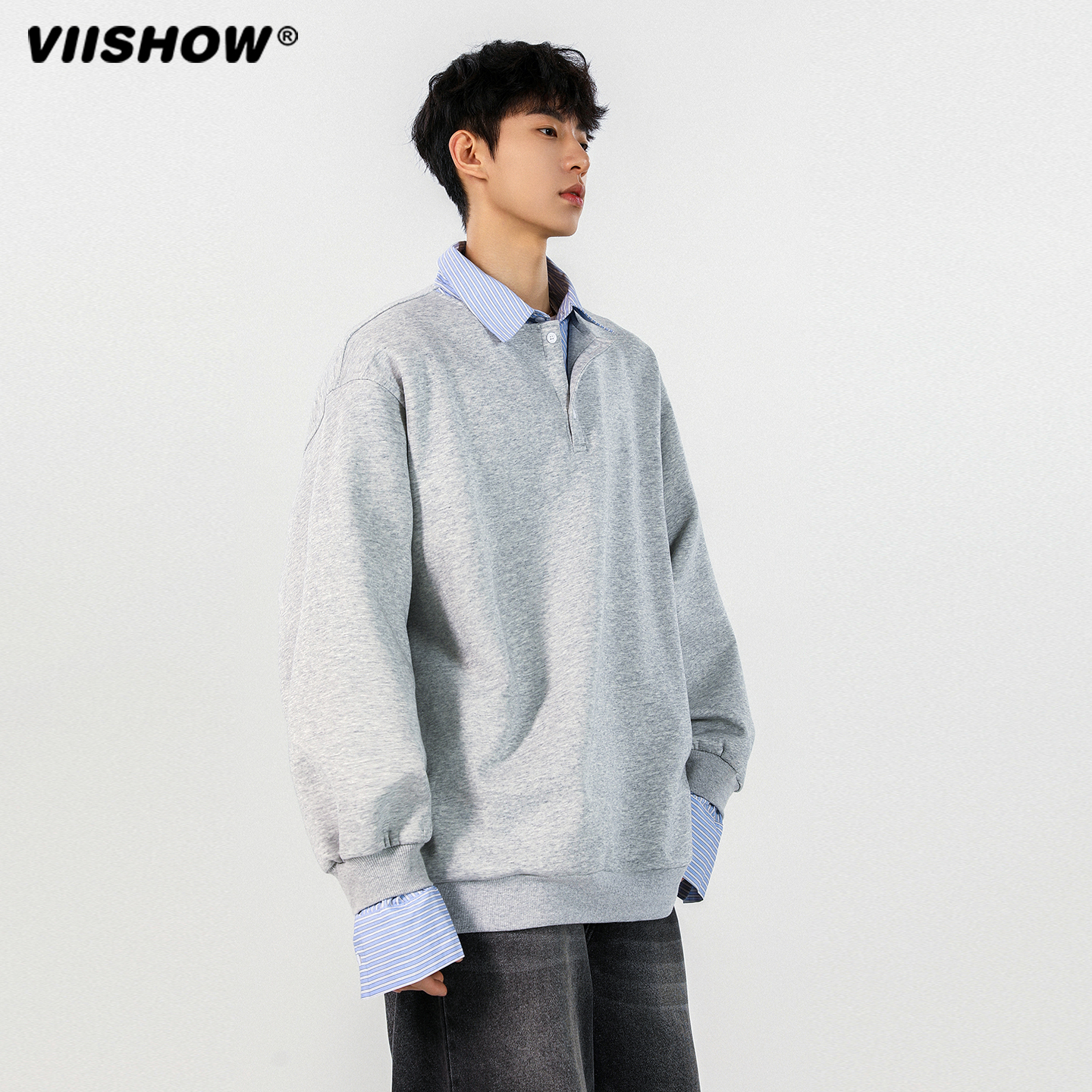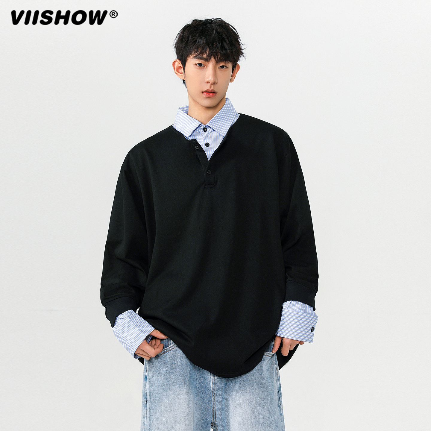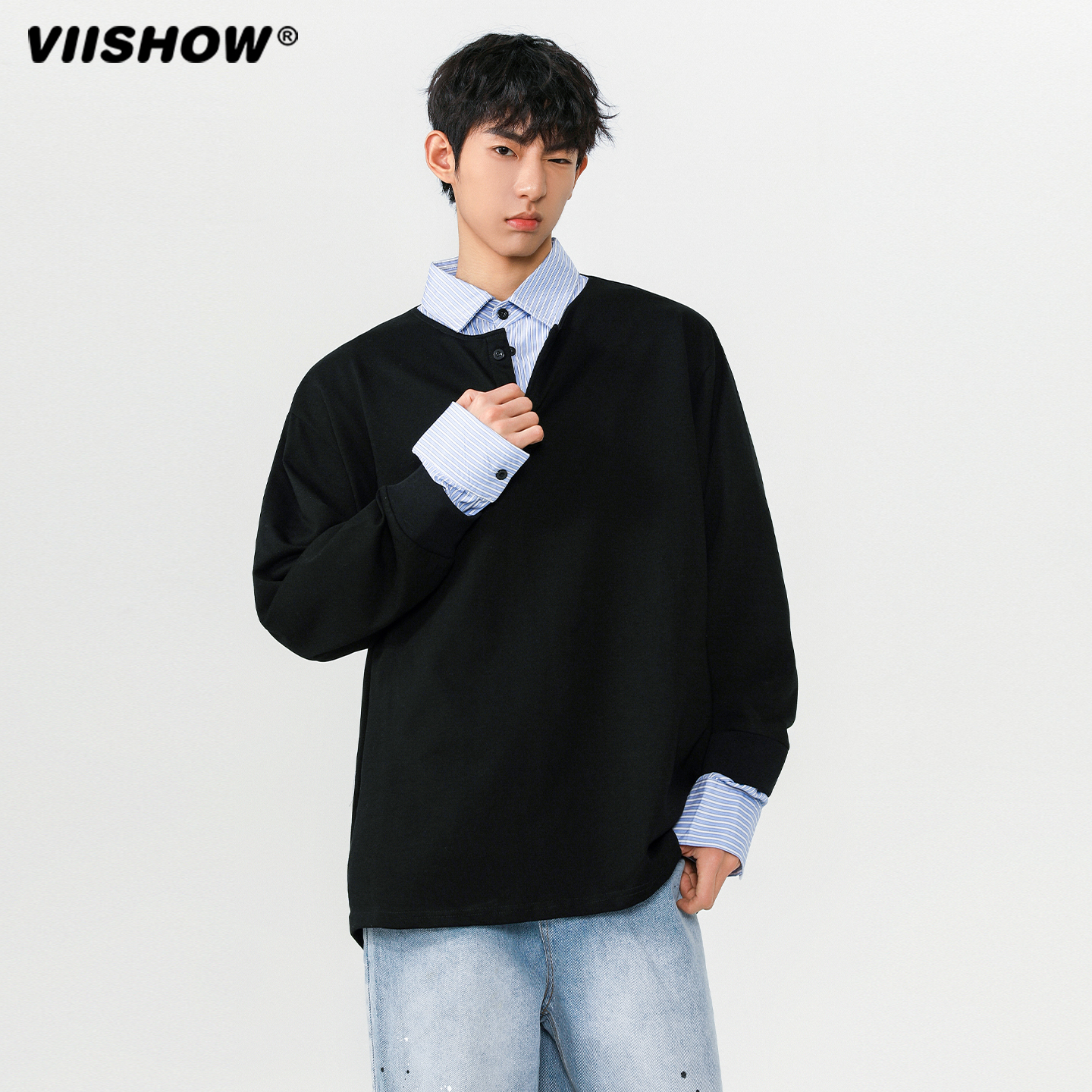 VIISHOW假两件卫衣男2025春秋季 ins韩系校园风宽松休闲上衣 新款