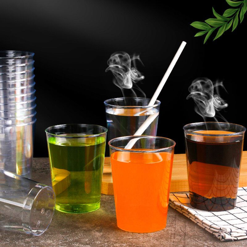 一次性酒杯硬塑料透明酒杯家用茶杯硬质八角水杯商用加厚航空杯