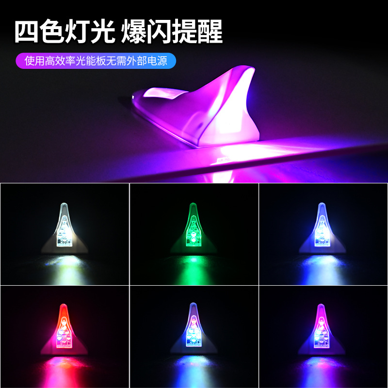 太阳能鲨鱼鳍天线汽车装 灯通用警示灯 饰爆闪灯防追尾车顶LED改装
