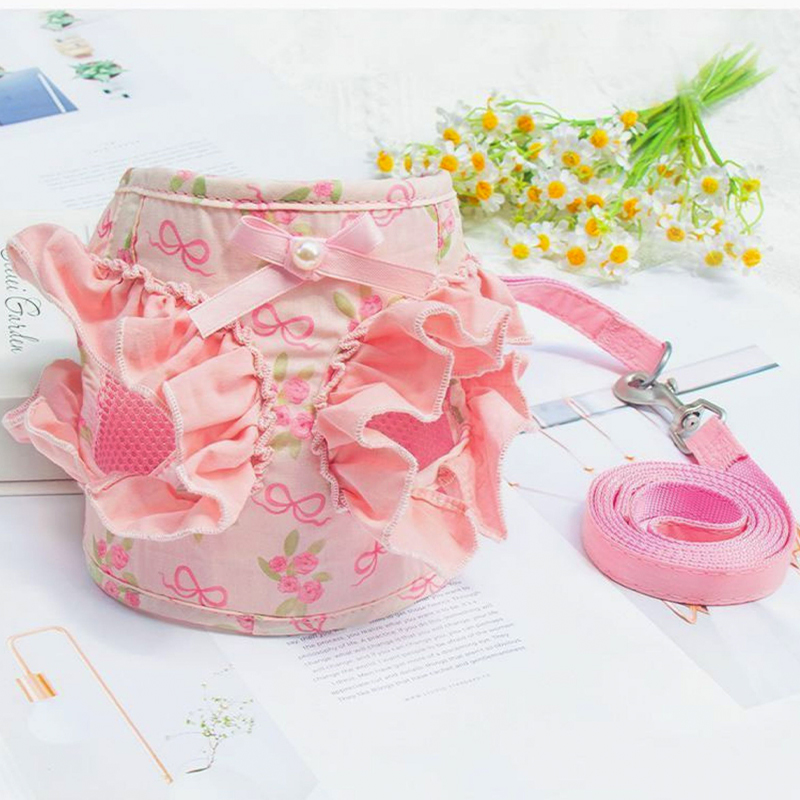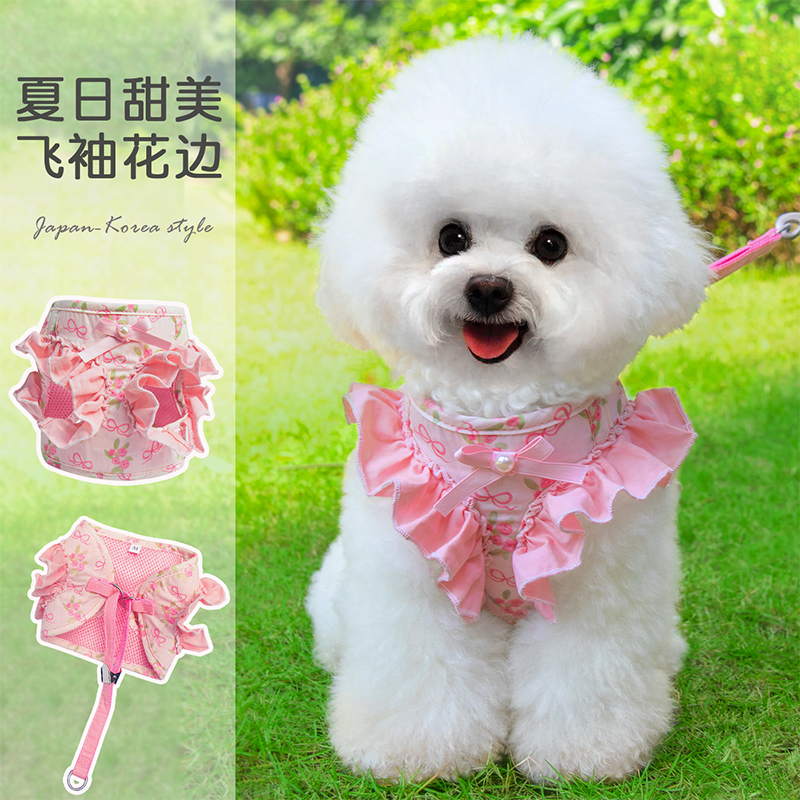 狗狗牵引绳中小型犬可调节比熊幼犬泰迪碎花夹子高颜值狗绳雪纳瑞