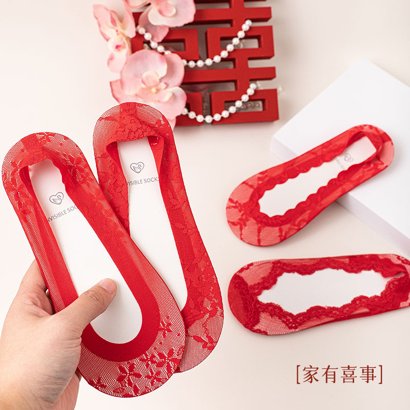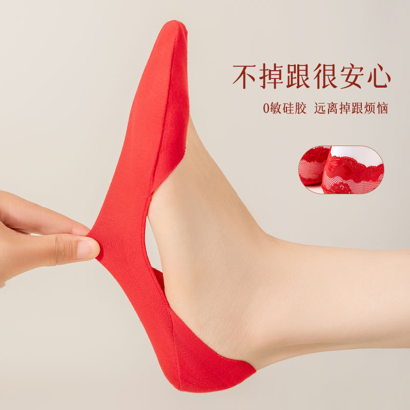结婚红色船袜女春秋款 纯棉浅口隐形新婚喜庆本命年红袜子配高跟鞋