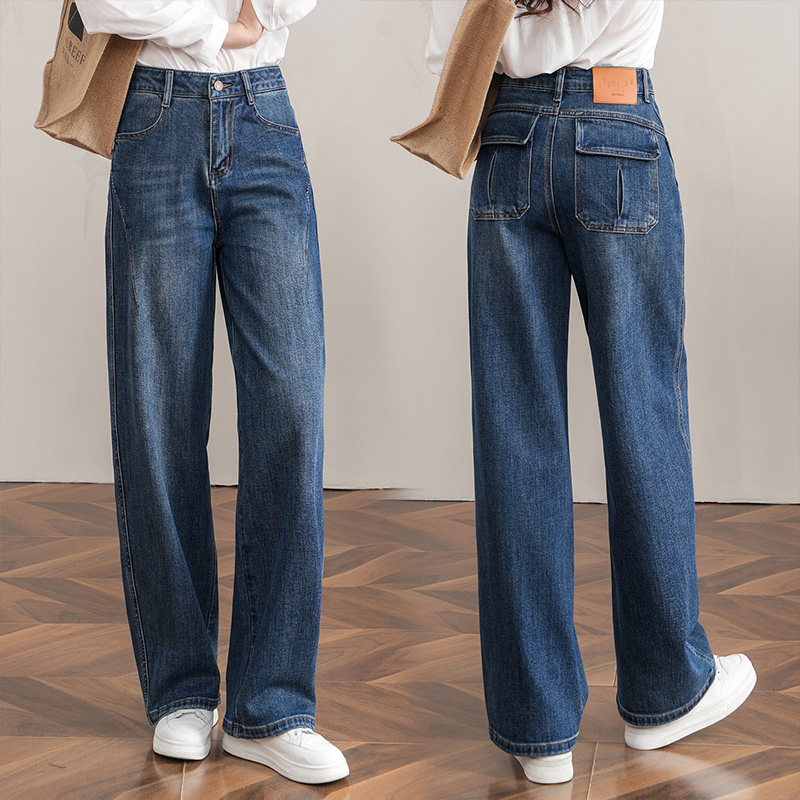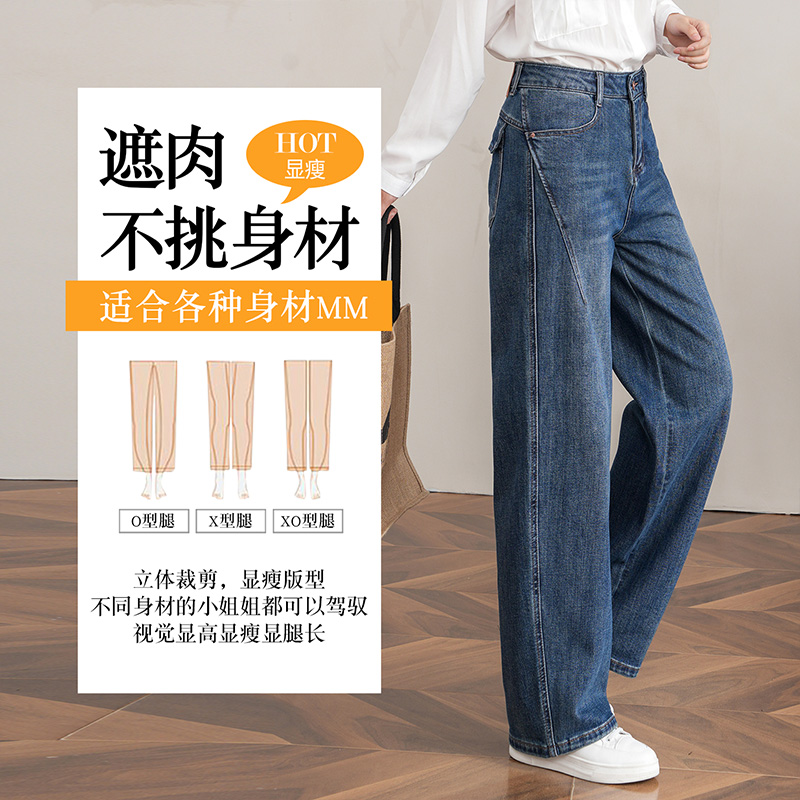 高腰显瘦垂感今年流行镰刀香蕉裤 2025新款 女秋季 复古蓝弯刀牛仔裤