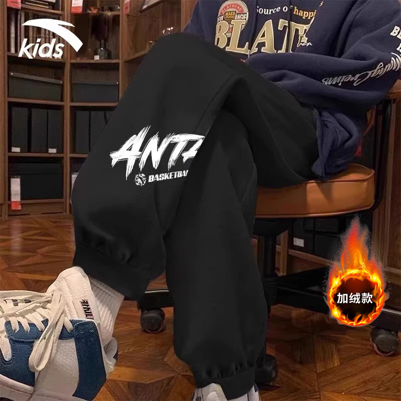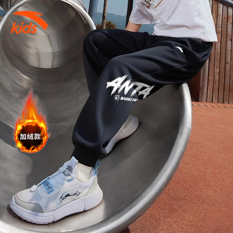 男大童透适潮流加绒篮球卫裤 新款 2025秋冬季 安踏儿童针织运动长裤