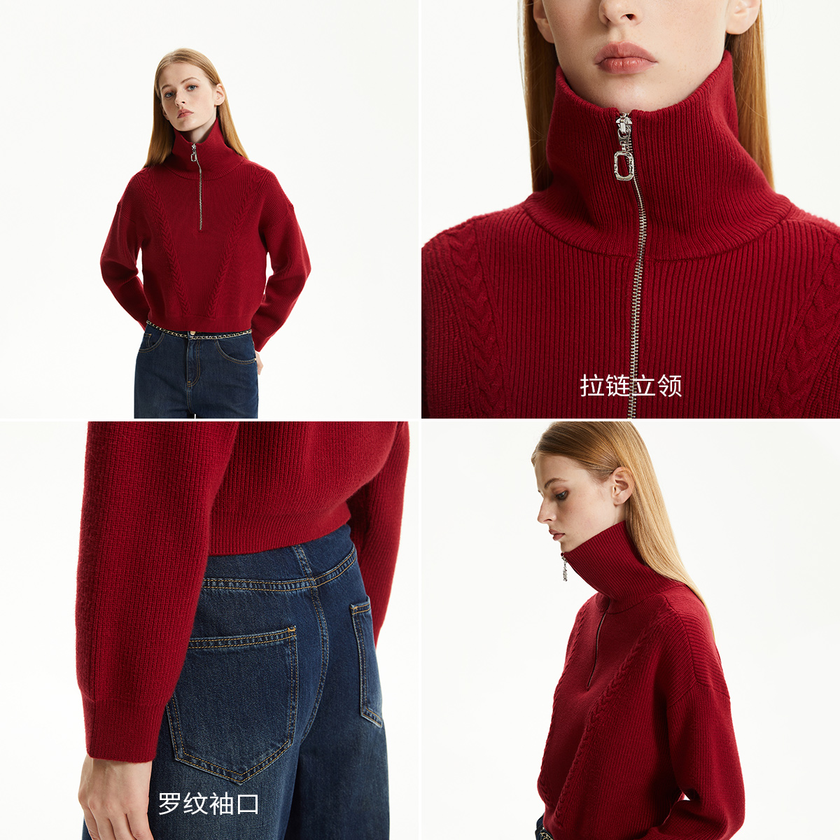 上衣时尚 Vero 拉链纯色短款 2025秋冬新款 百搭325413025 Moda针织衫