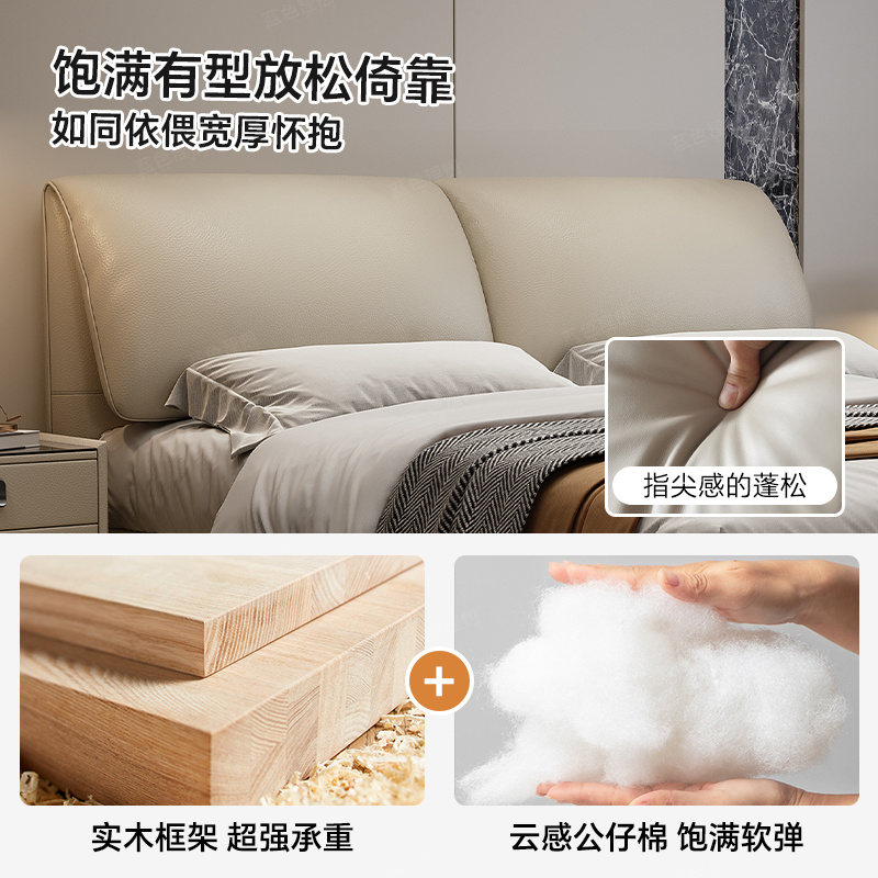 政府补贴蓝色理想大象平移气压真皮床主卧双人大床1.8m储物软包床