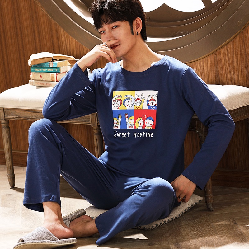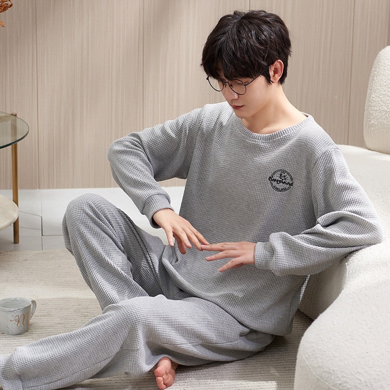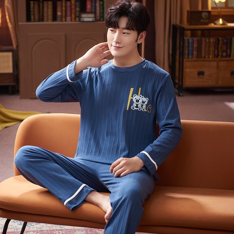 睡衣纯棉2025年新款 高级感青少年家居服套装 长袖 薄款 春秋大码 男士