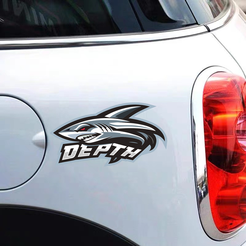 鲨鱼贴纸遮挡划痕卡通创意个性 饰车贴电动摩托车防水车窗车贴 装