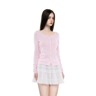 显瘦百搭长袖 BM开衫 修身 春秋圆领粉色甜美短款 针织外套 女2025新款