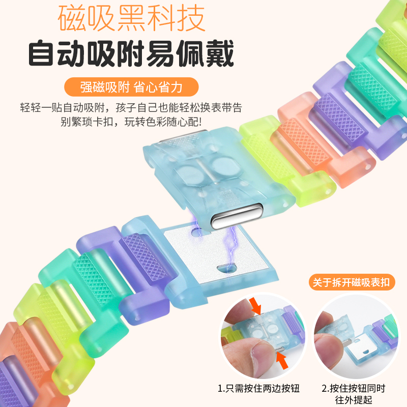 夜光磁吸腕带z11 q3彩虹d2a q1a透气替换带 z10少年版 z6pro表链d5 适用于小天才z6a闪扣表带z8 z6d