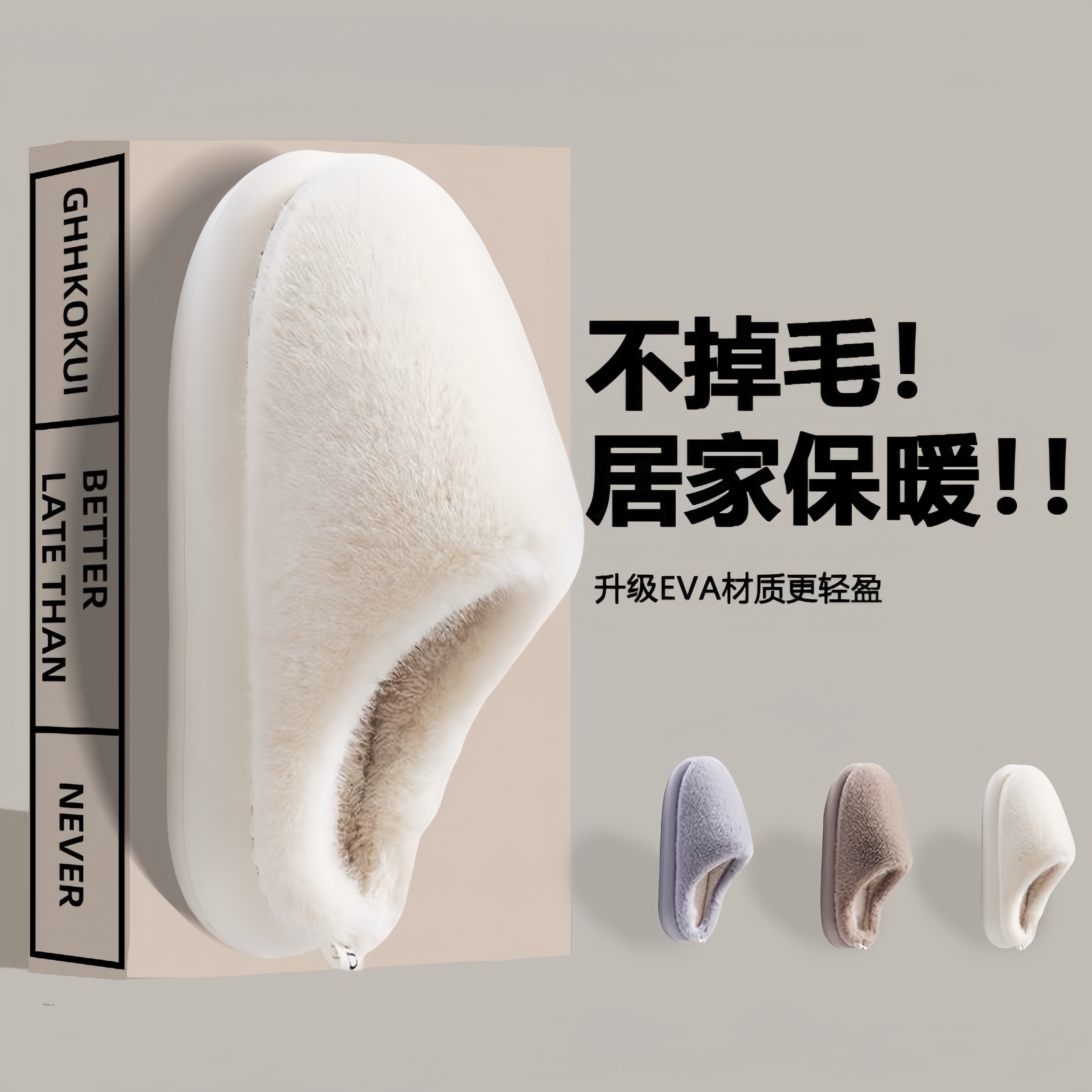 室内家居情侣一对厚底毛毛拖鞋 秋冬季 男 女2025新款 买一送一棉拖鞋