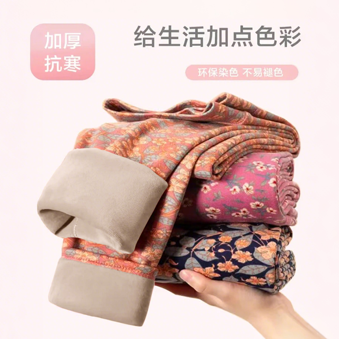 外穿高腰加绒秋冬保暖加厚加大 加绒中老年妈妈碎花打底裤 秋裤 冬季