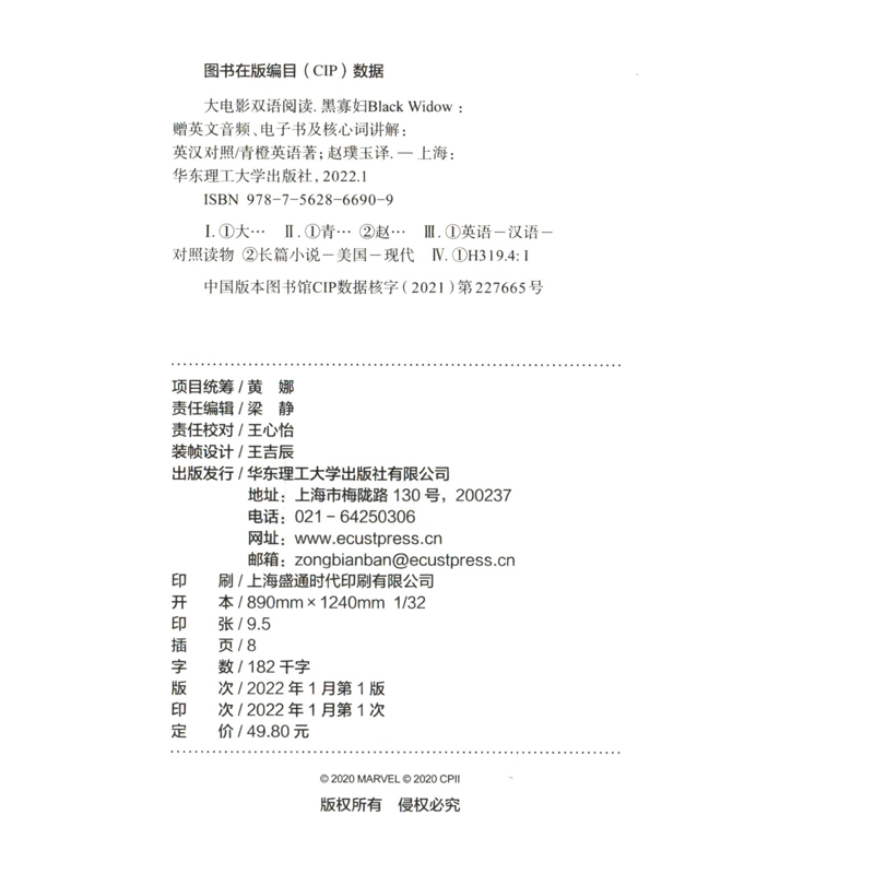 Widow 社新华书店正版 大电影双语阅读 赵璞玉译双语读物华东理工大学出版 青橙英语著 黑寡妇Black