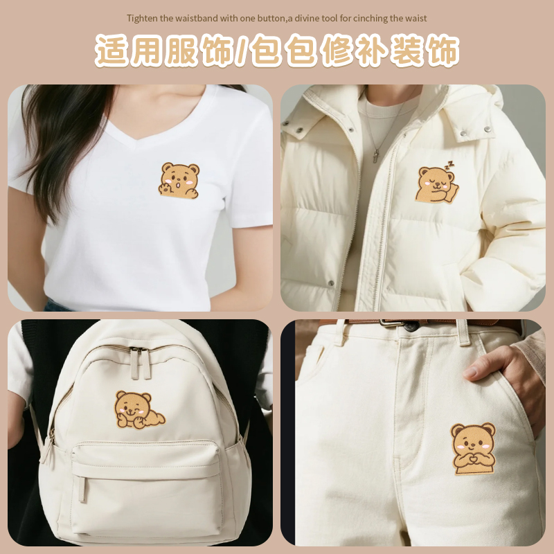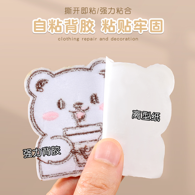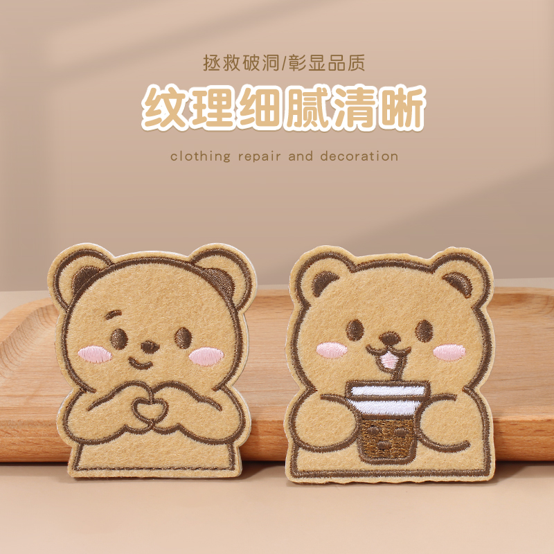 高端补丁贴自粘免缝羽绒服衣服裤 子破洞修补修复棕色小熊刺绣布贴