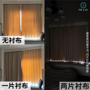 窗帘全遮光衬布卧室加装 遮阳窗户神器防晒遮阳 一层内衬里布挂钩式