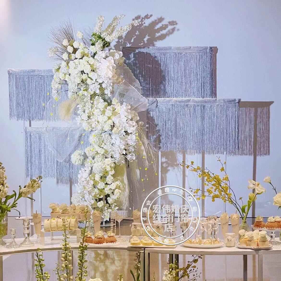 亮闪闪银丝款 饰宴会多层可定制尺寸 线帘婚庆加密流苏帘婚礼道具装