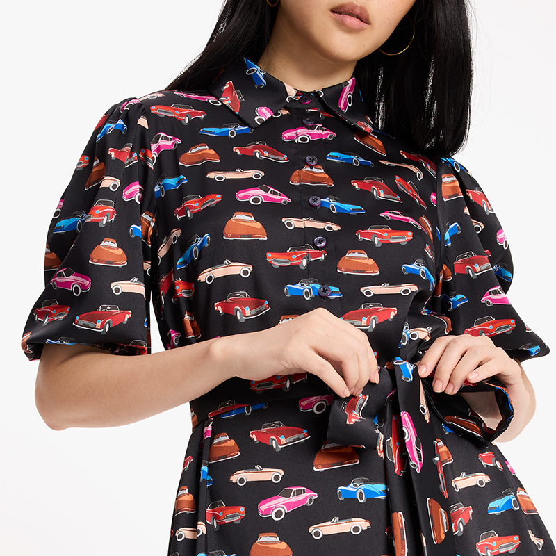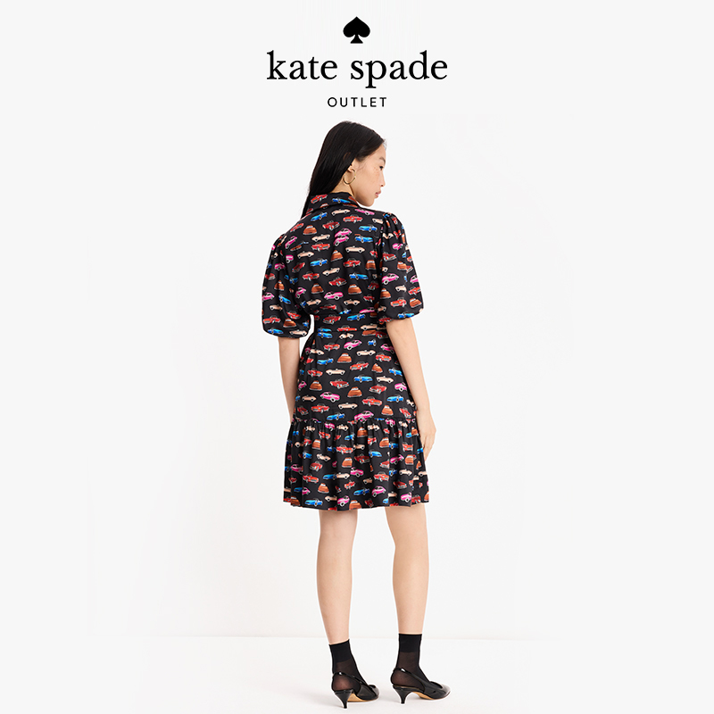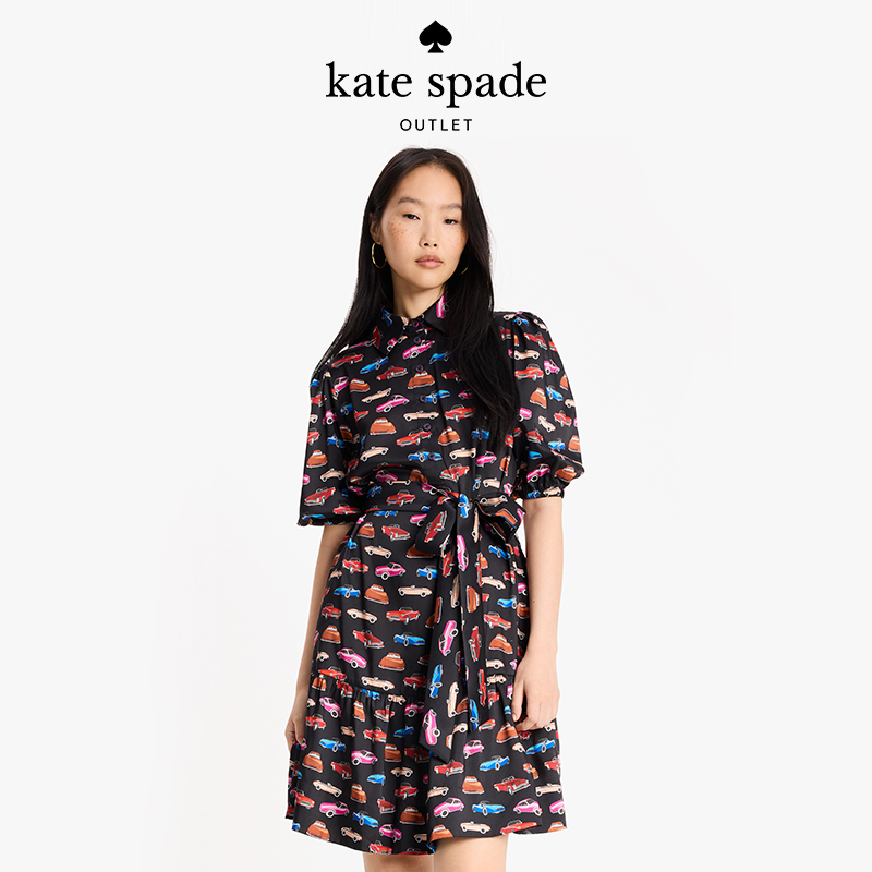 汽车印花衬衫 spade奥莱 kate 领收腰连衣裙轻奢通勤女 3期免息