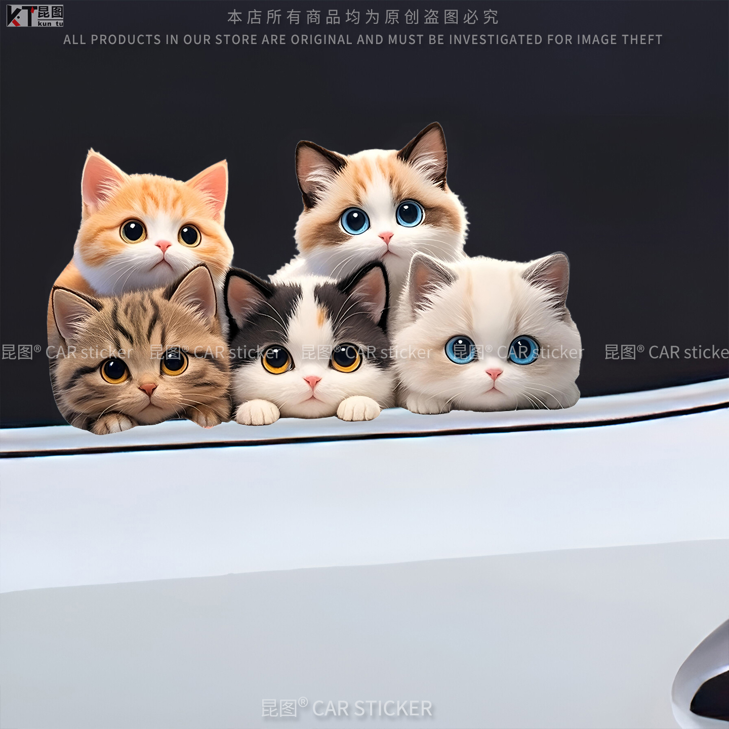 猫咪3D立体汽车贴纸车尾保险杠车门长条遮挡划痕装 饰车窗电动车贴