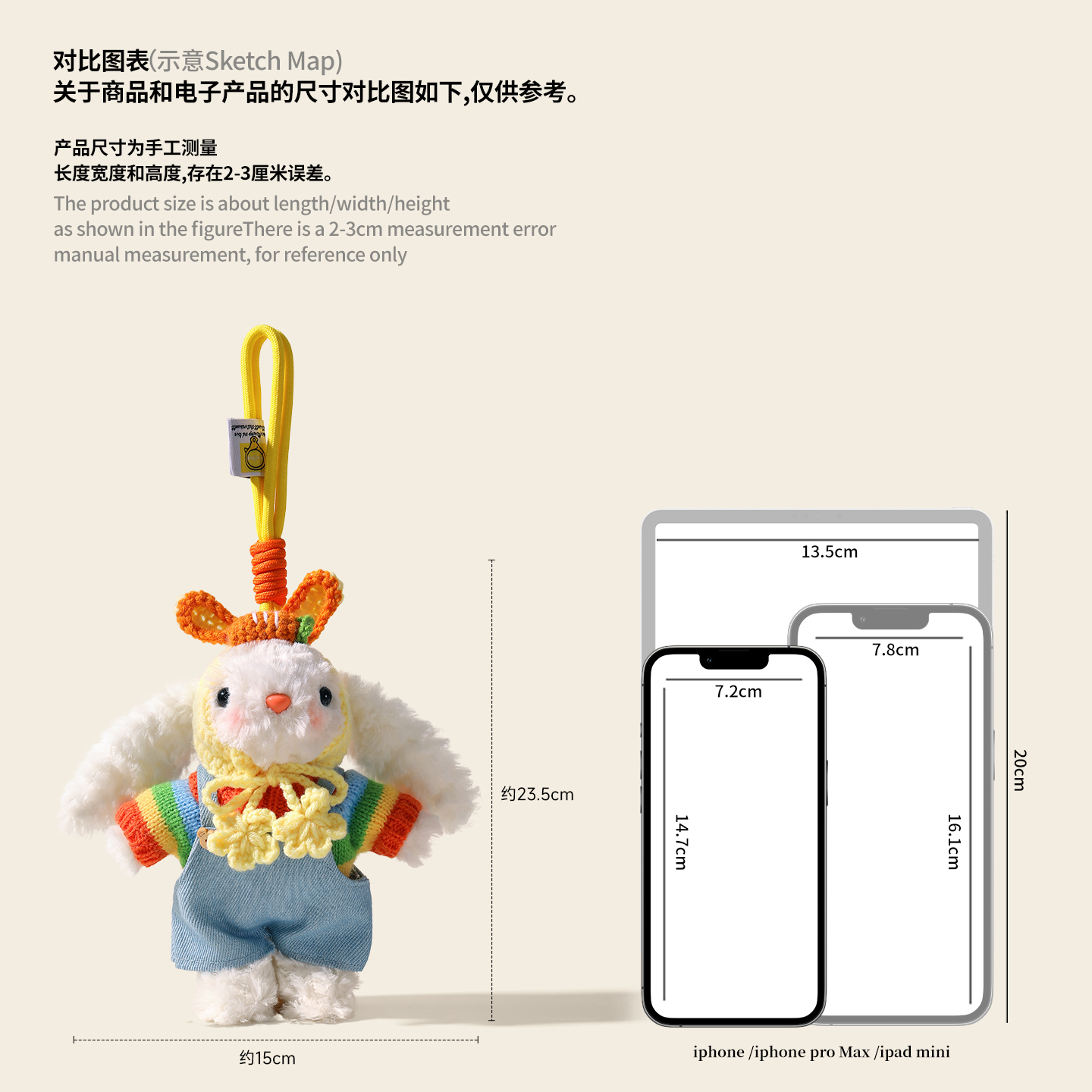 多巴胺运动风背带裤 垂耳兔子玩偶钥匙扣可爱毛绒公仔娃娃情侣挂件
