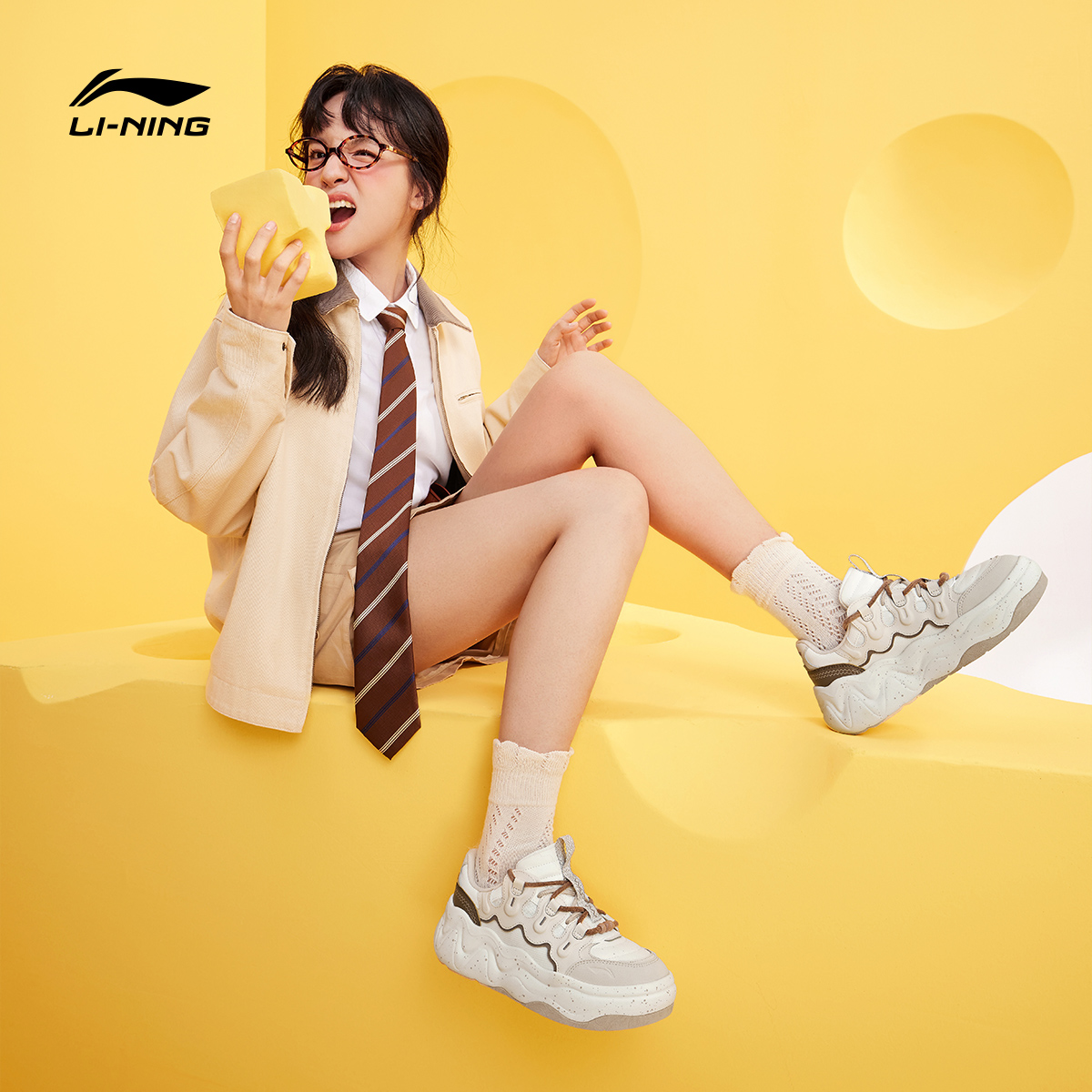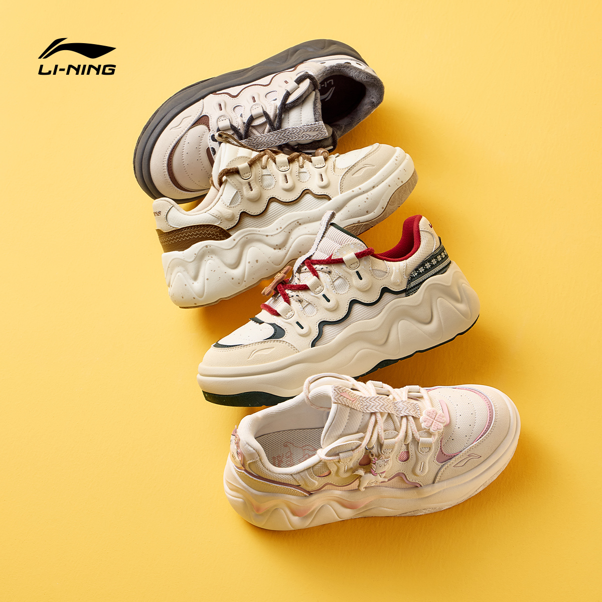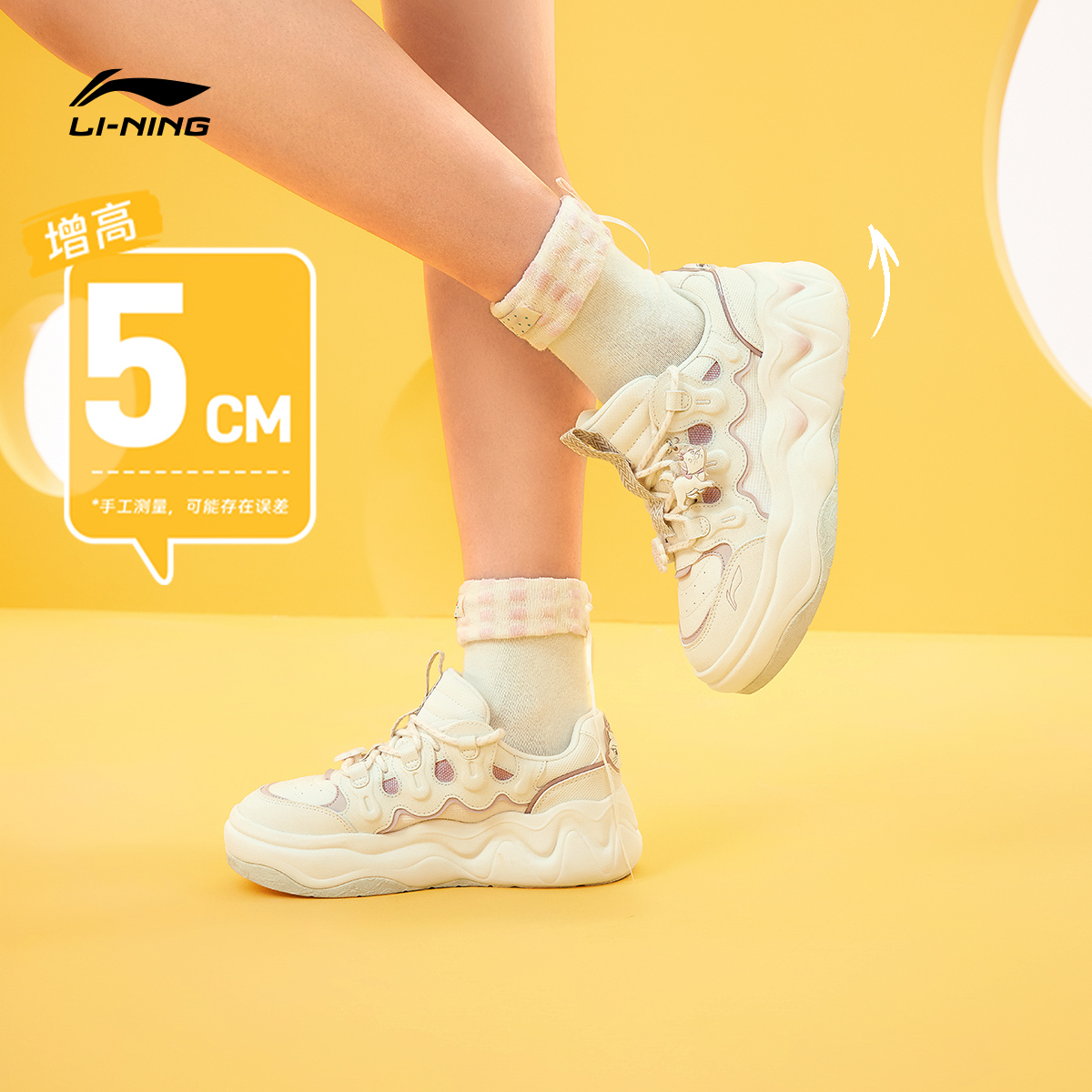 厚底增高鞋 子秋季 新款 李宁奶酪3面包鞋 休闲鞋 女鞋 运动鞋 女 老爹鞋