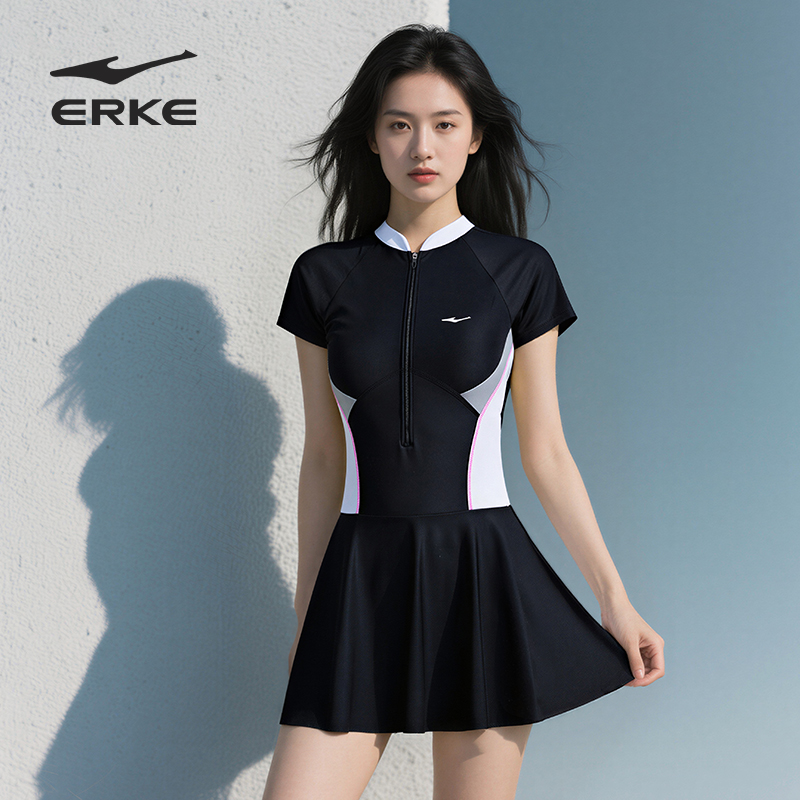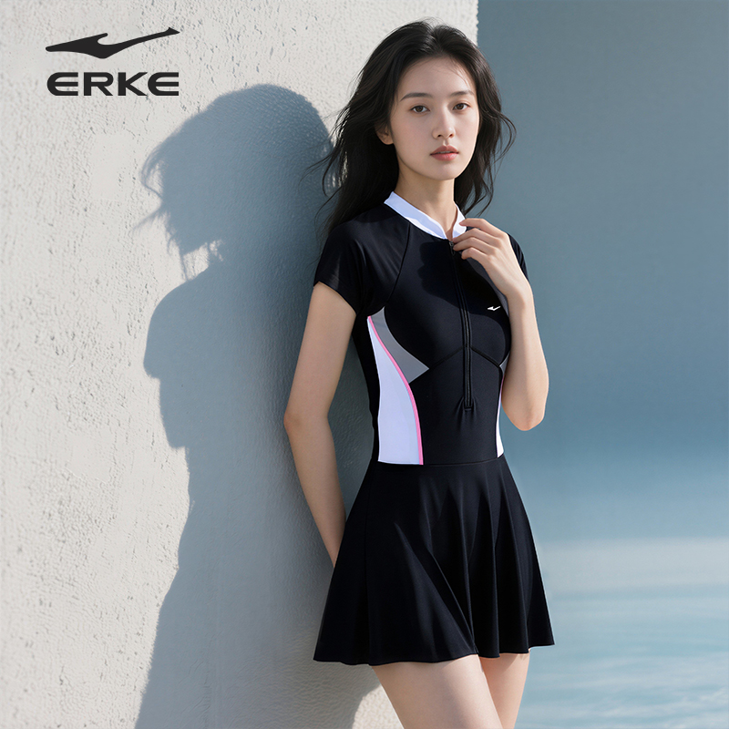 平角专业泳装 保守遮肉显瘦游泳短裤 连体泳衣女新款 安踏小蛮腰
