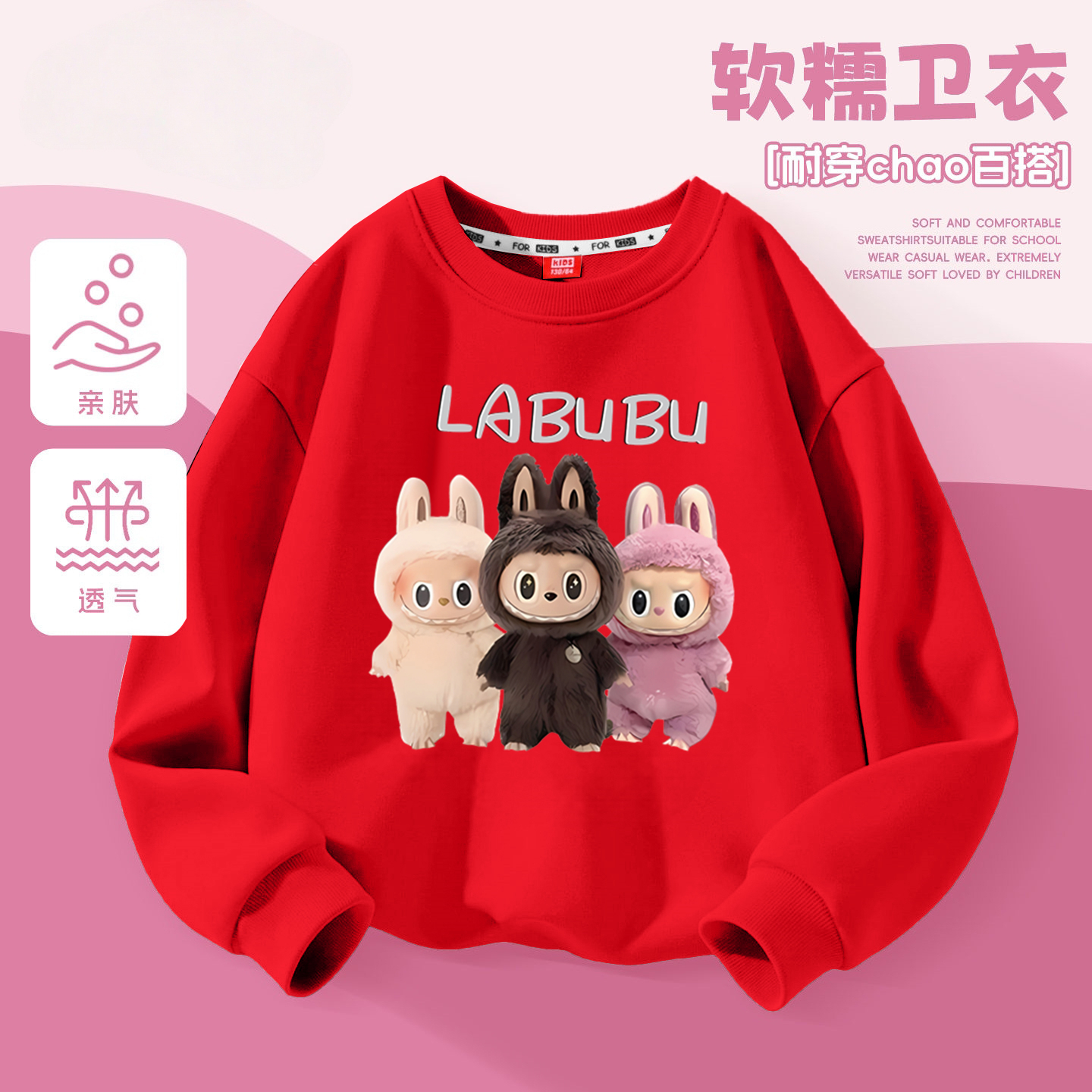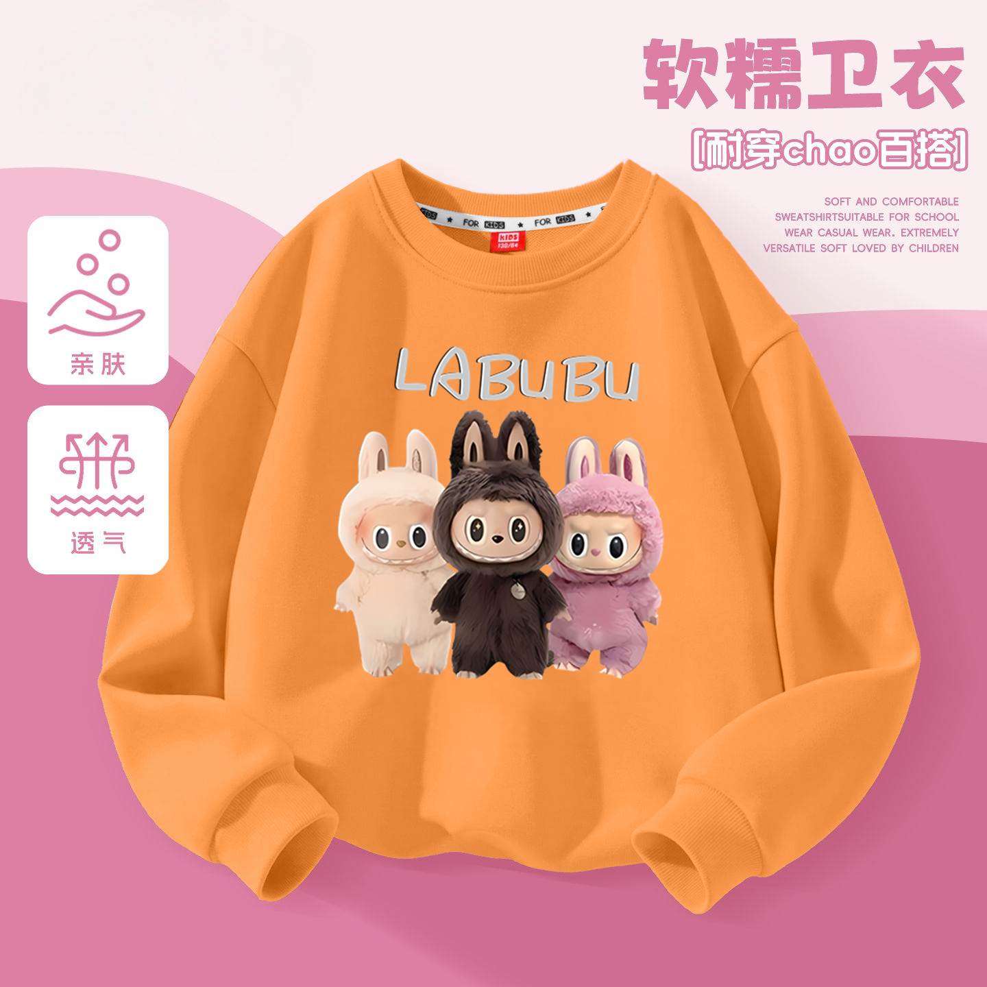 女童春秋长袖 中大童宝宝宽松洋气圆领上衣打底 拉布布卫衣2025新款
