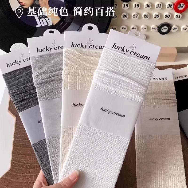 防臭百搭春秋长袜灰色袜子 纯棉中筒袜秋季 堆堆袜子女2025新款 爆款