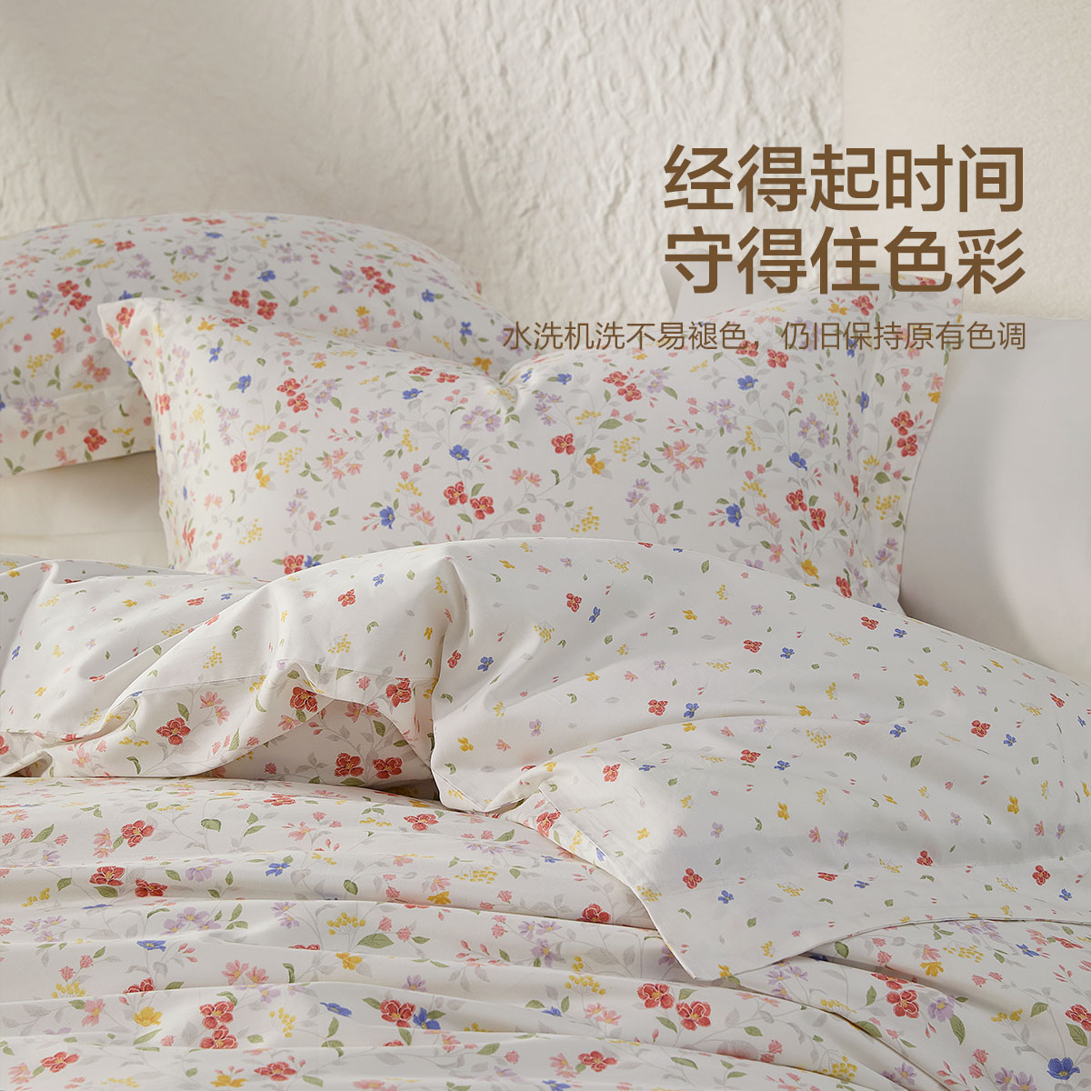 水星家纺60S长绒棉贡缎被套单件裸睡A类抑菌纯棉被子罩小清新床品
