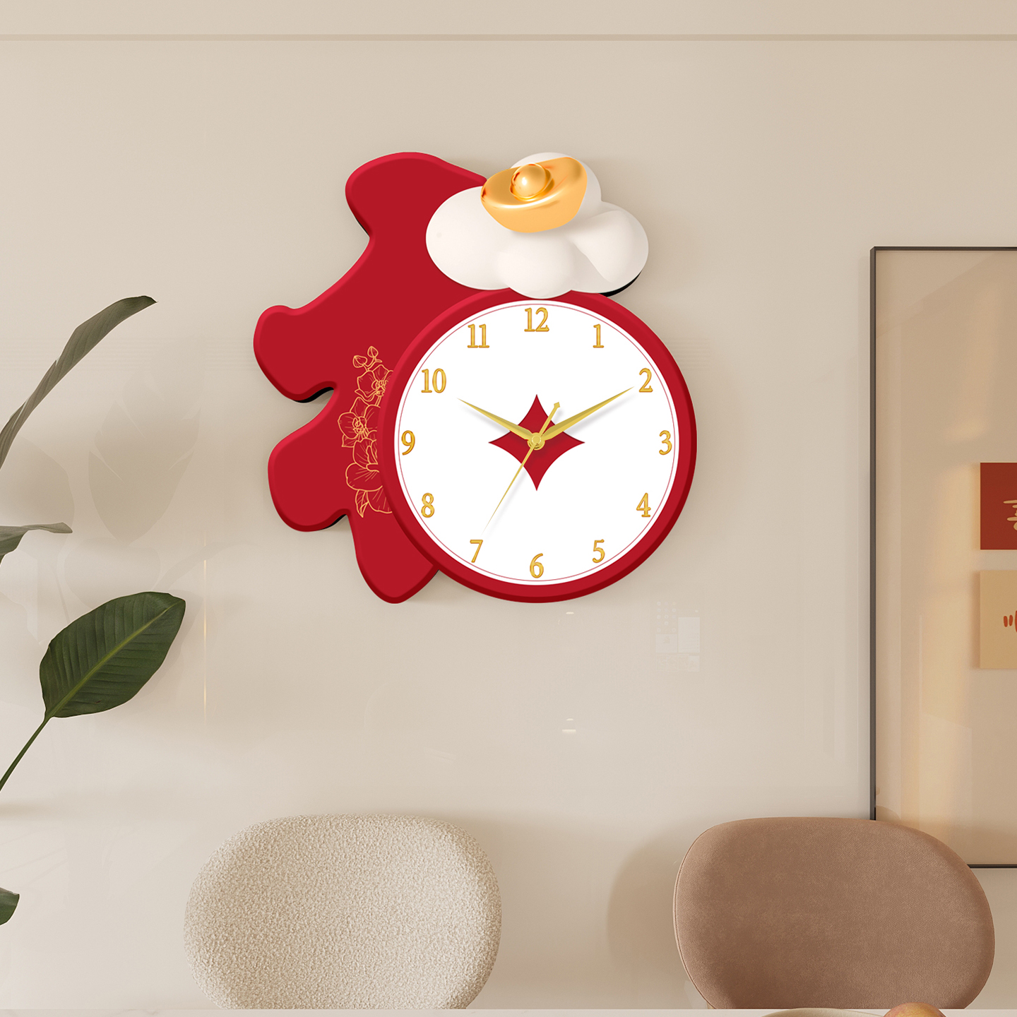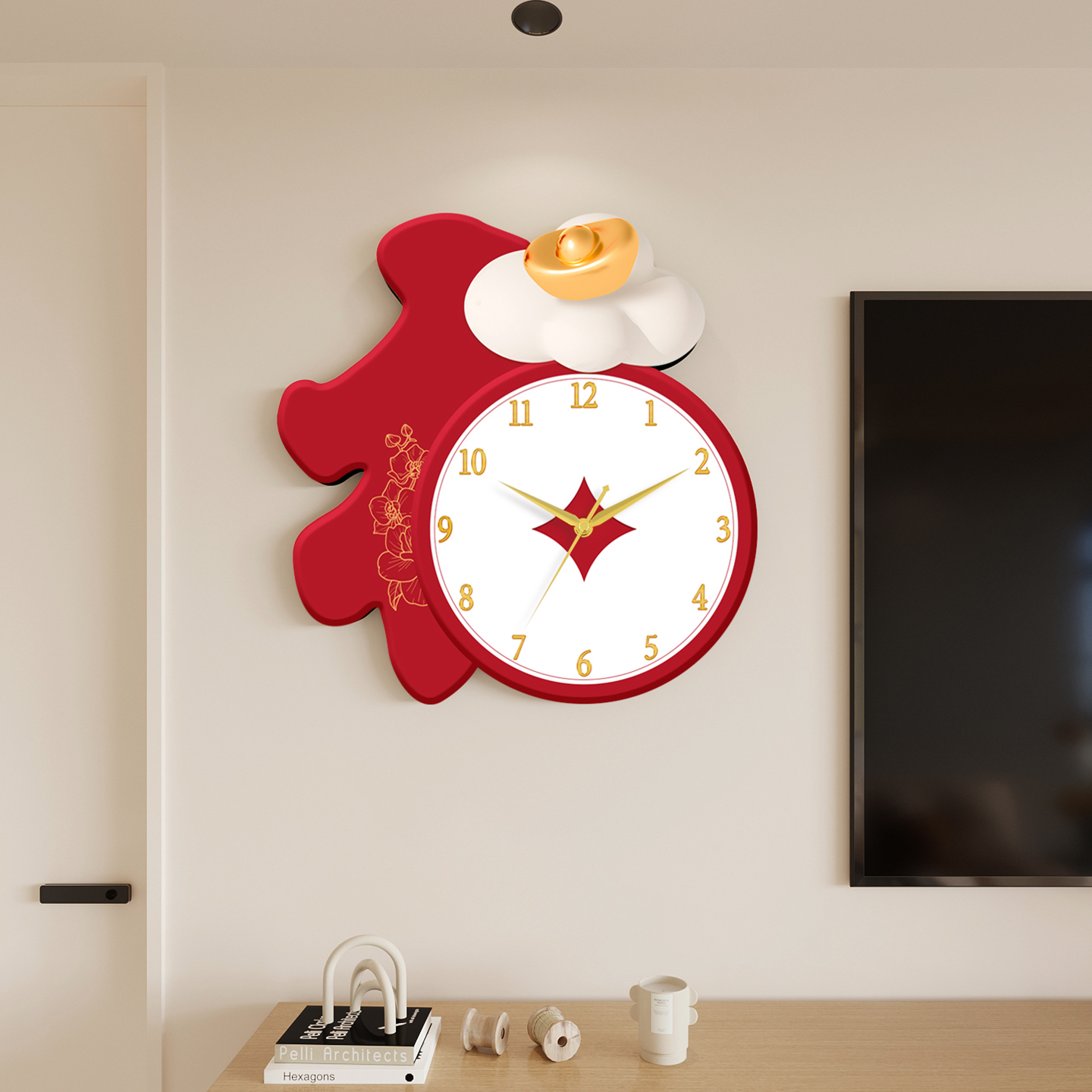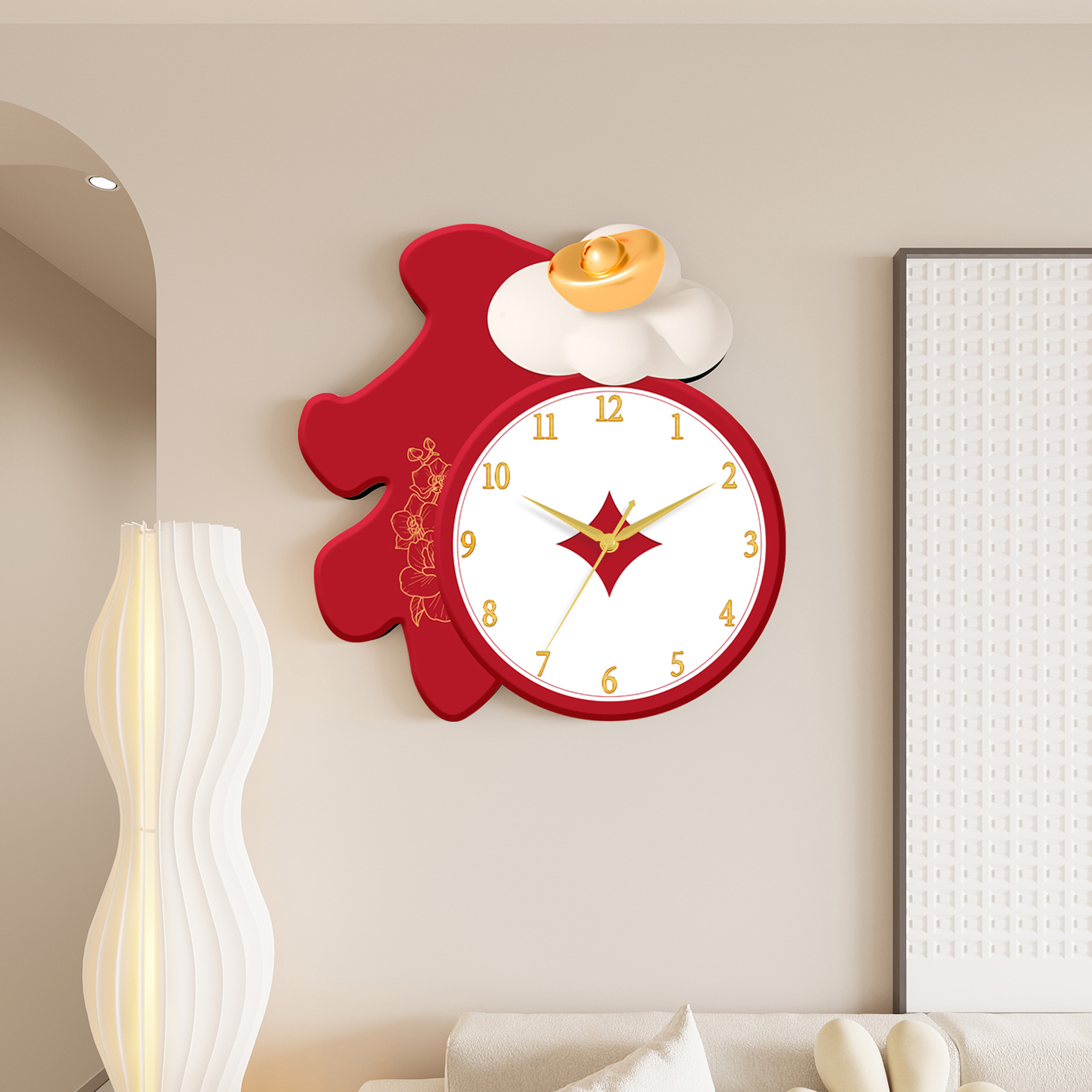 新中式 饰石英钟 钟表挂钟客厅家用创意免打孔挂墙时钟日历背景墙装