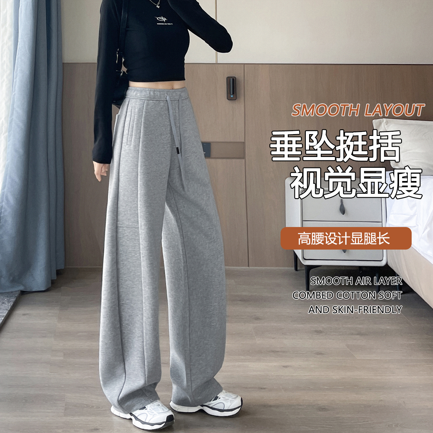 休闲松弛感镰刀运动卫裤 弯刀阔腿裤 直筒裤 高腰垂感窄版 子 女春秋季