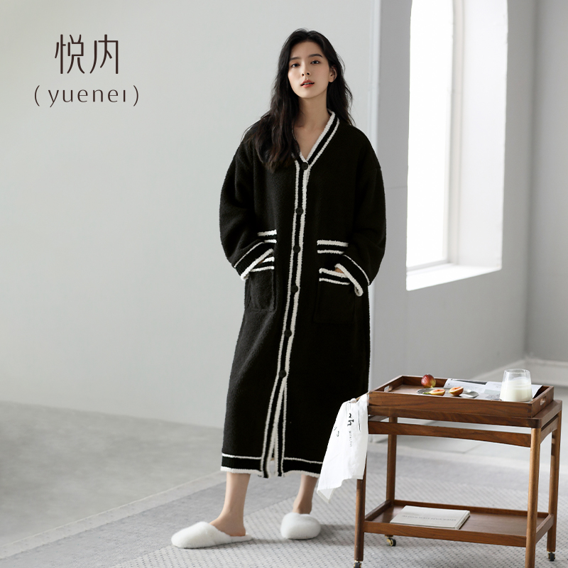 浴袍秋冬家居服 睡衣休闲慵懒风睡裙大码 轩靓睡袍女春秋季 纯棉长袖