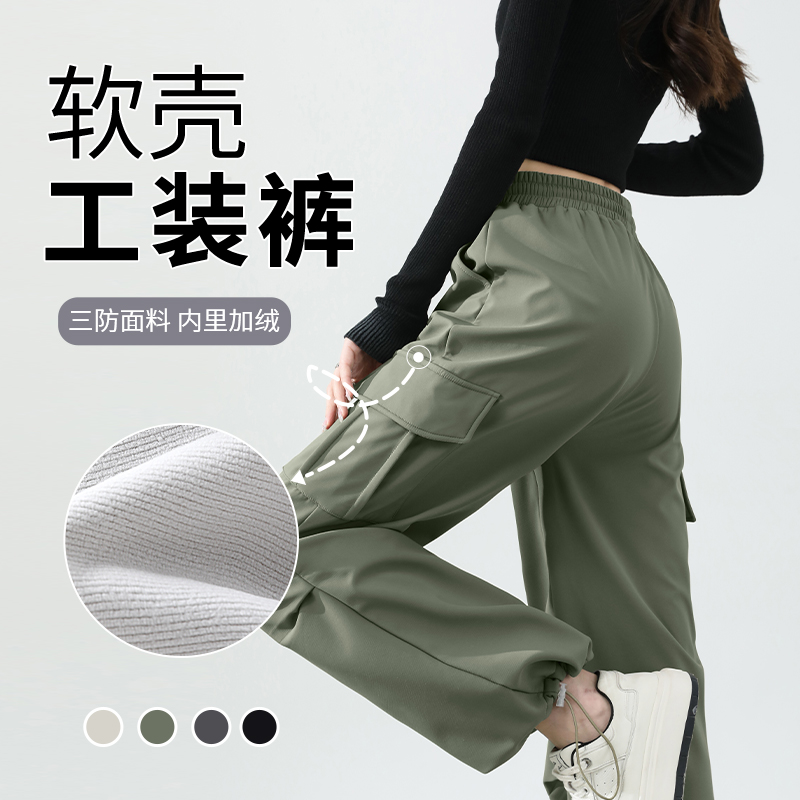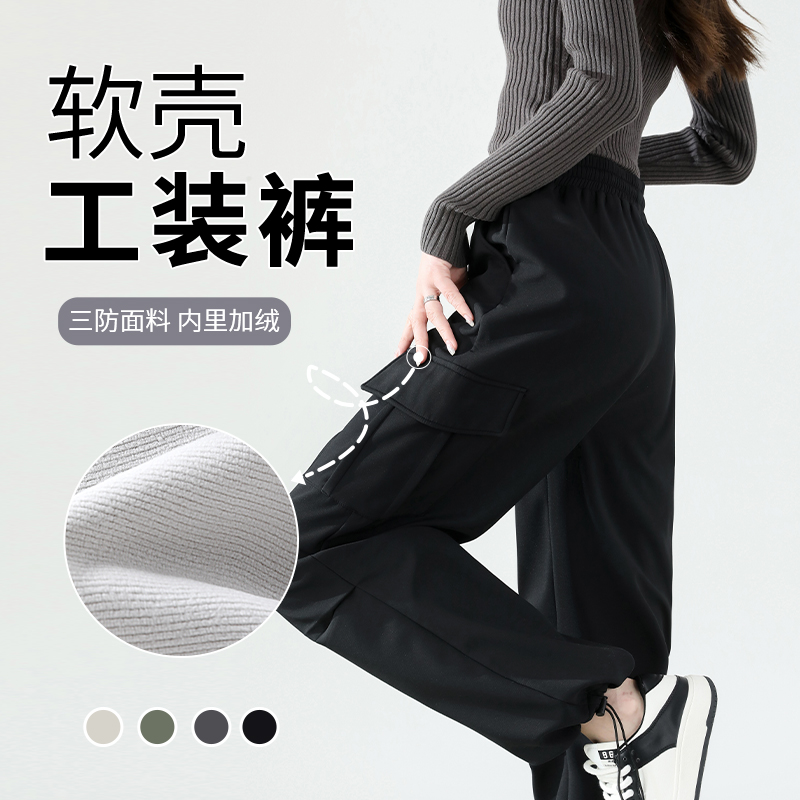 加绒运动登山裤 班尼路S&K系列灰色三防软壳工装 新款 女2025冬季 裤