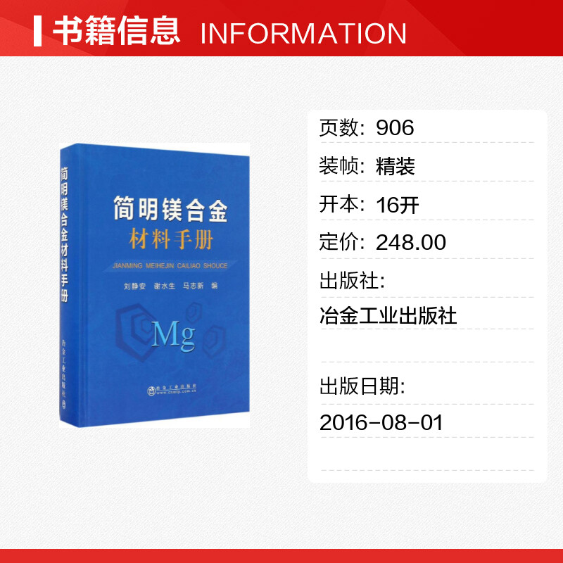 马志新 编 冶金工业出版 刘静安 社 图书籍 谢水生 新华书店正版 简明镁合金材料手册 冶金工业专业科技