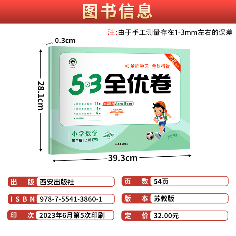 同步天天练单元 53全优卷三年级上册数学苏教版 期中期末检测试卷3年级卷子冲刺100分五三全优卷三年级上册同步练习册 新版 2023秋季