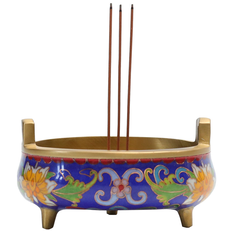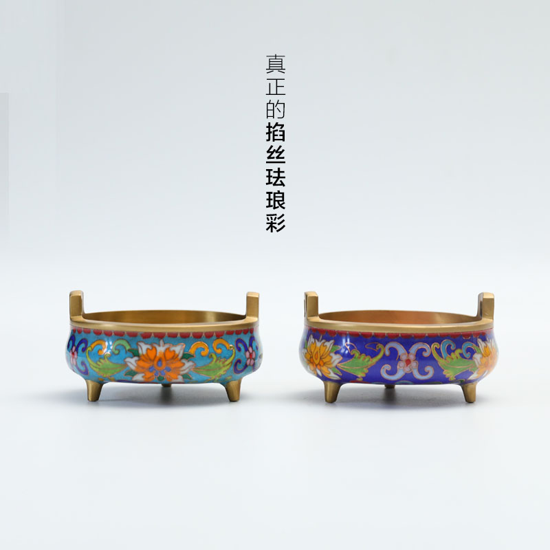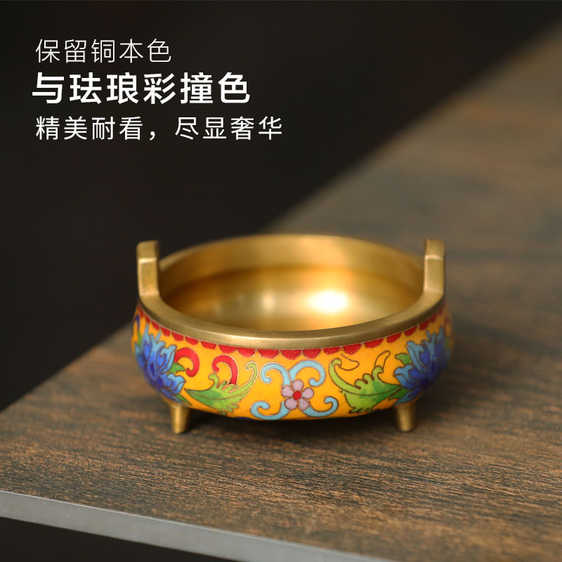 紫巅珐琅彩纯黄铜供佛香炉家用室内檀香供佛香炉景泰蓝手工香薰炉