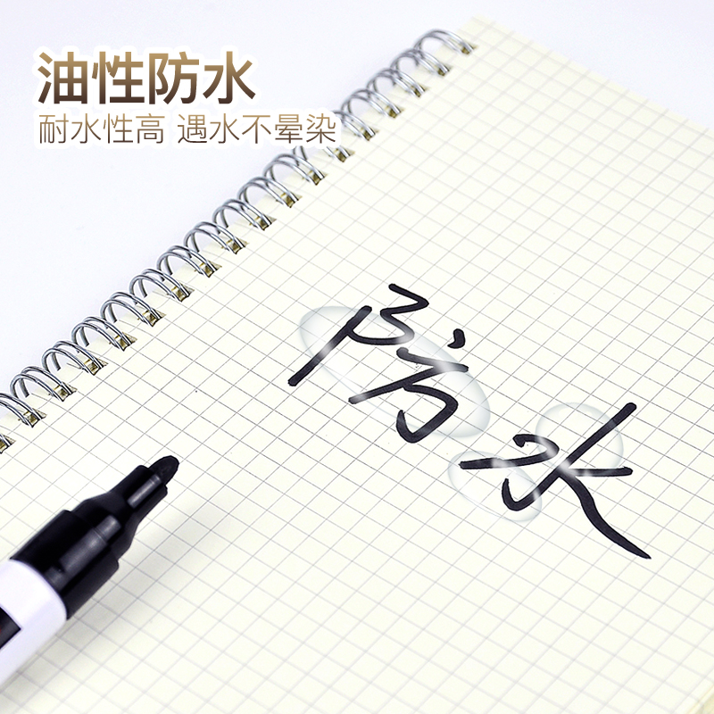 双头黑色油性记号笔小学生美术专用勾线笔防水防油速干不掉色细头粗头工地油漆笔签名笔绘画彩色粗细不褪色