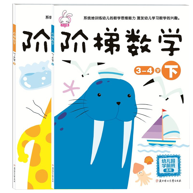 4岁上下 幼儿数学启蒙畅销儿童书 幼儿数学逻辑思维训练书5 学前班小班教材用书 智力开发书籍数学思维训练书籍 6岁 2册阶梯数学3