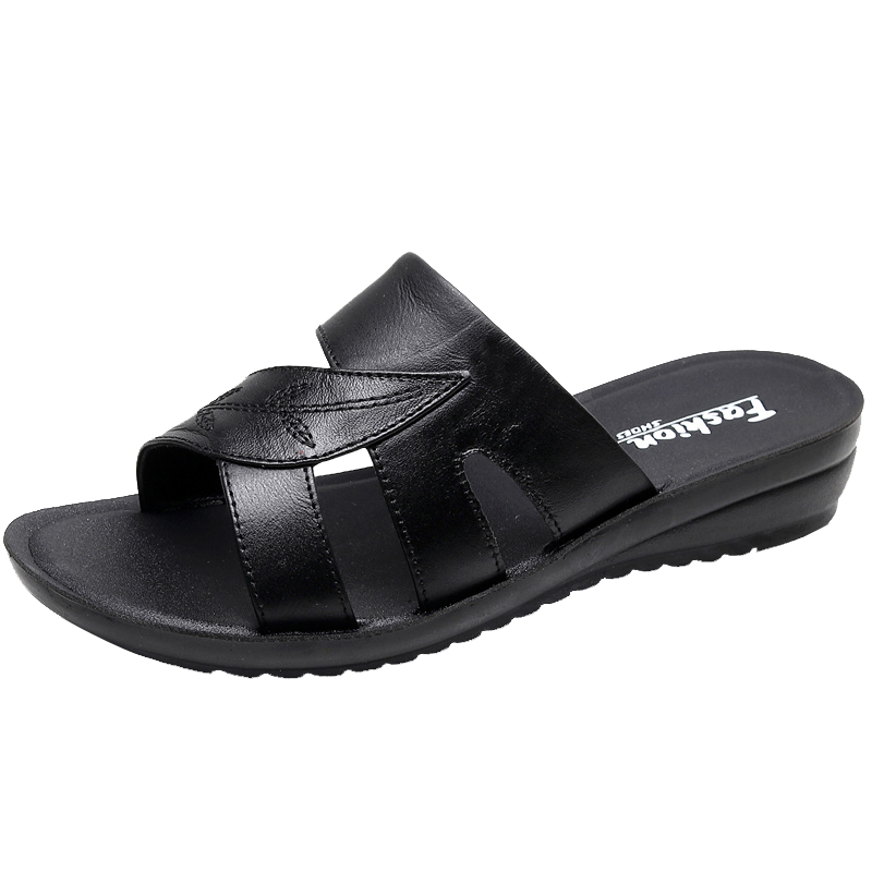 中老年奶奶凉拖 坡跟真皮平底一字拖夏大码 妈妈凉拖鞋 舒适外穿时尚
