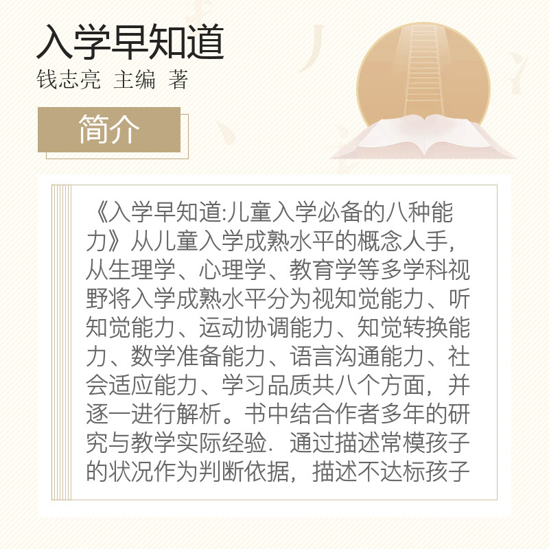 钱志亮书籍3 入学早知道 6岁幼儿园家长学前家教孩子素质教育教材儿童入学八种能力适应成熟小学准备幼小衔接 新华正版