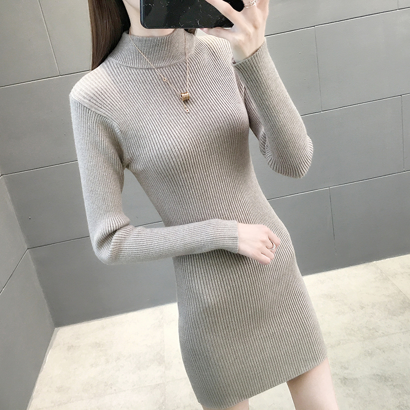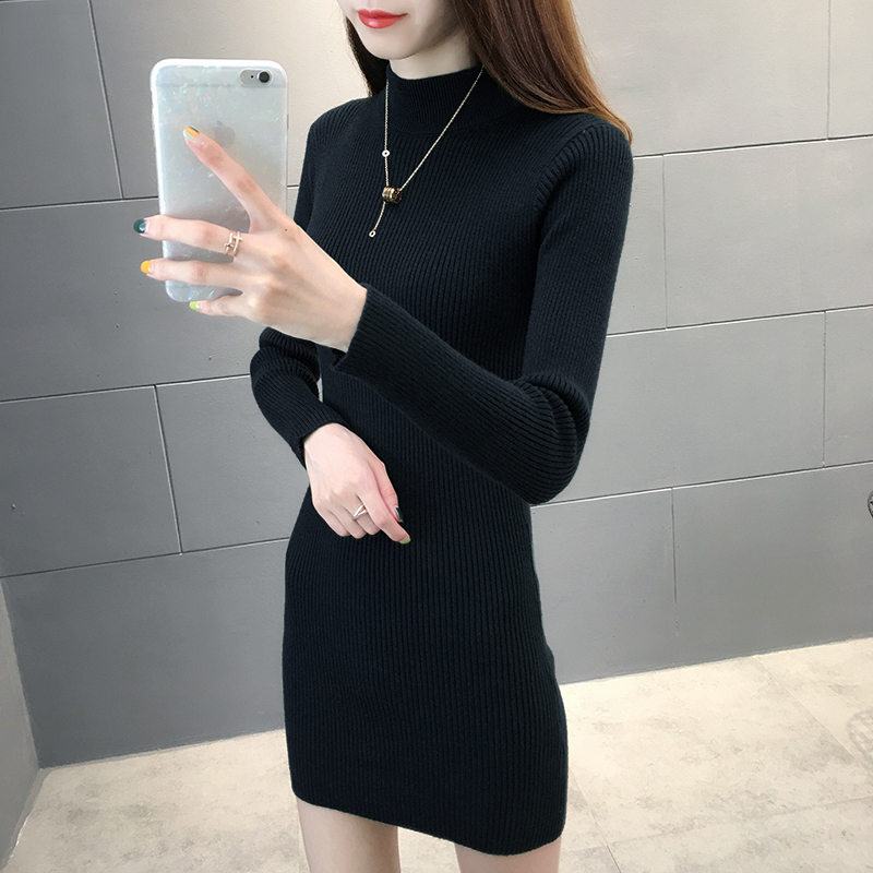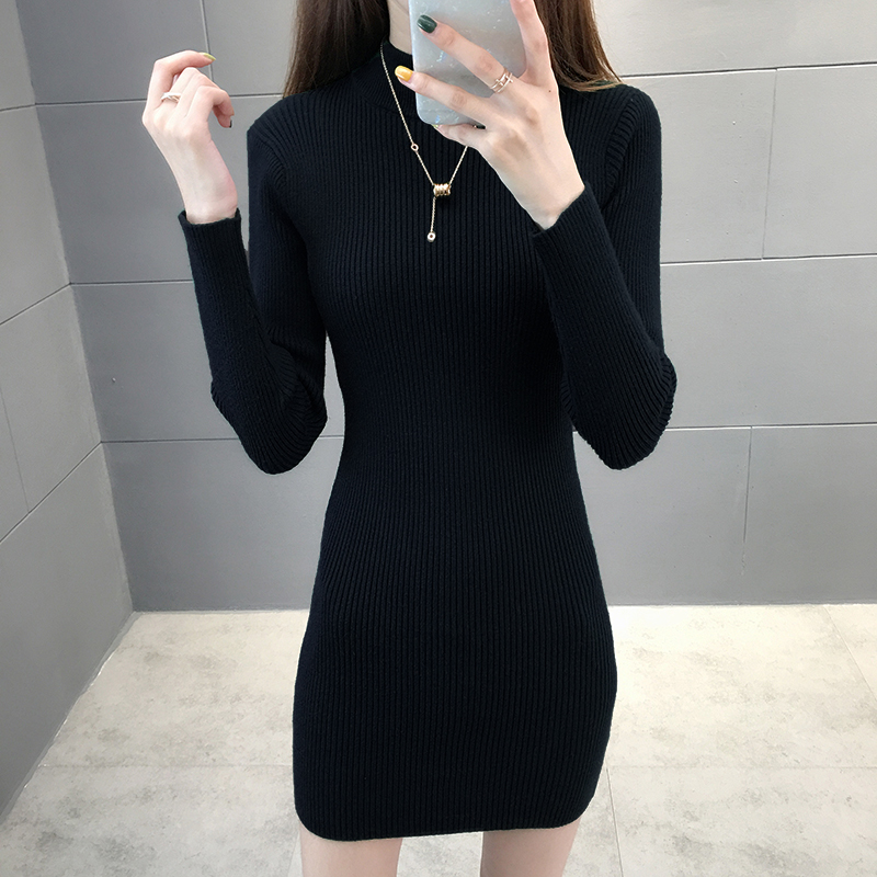 针织打底衫 洋气内搭长袖 套头修身 半高领黑色毛衣女秋冬2025中长款