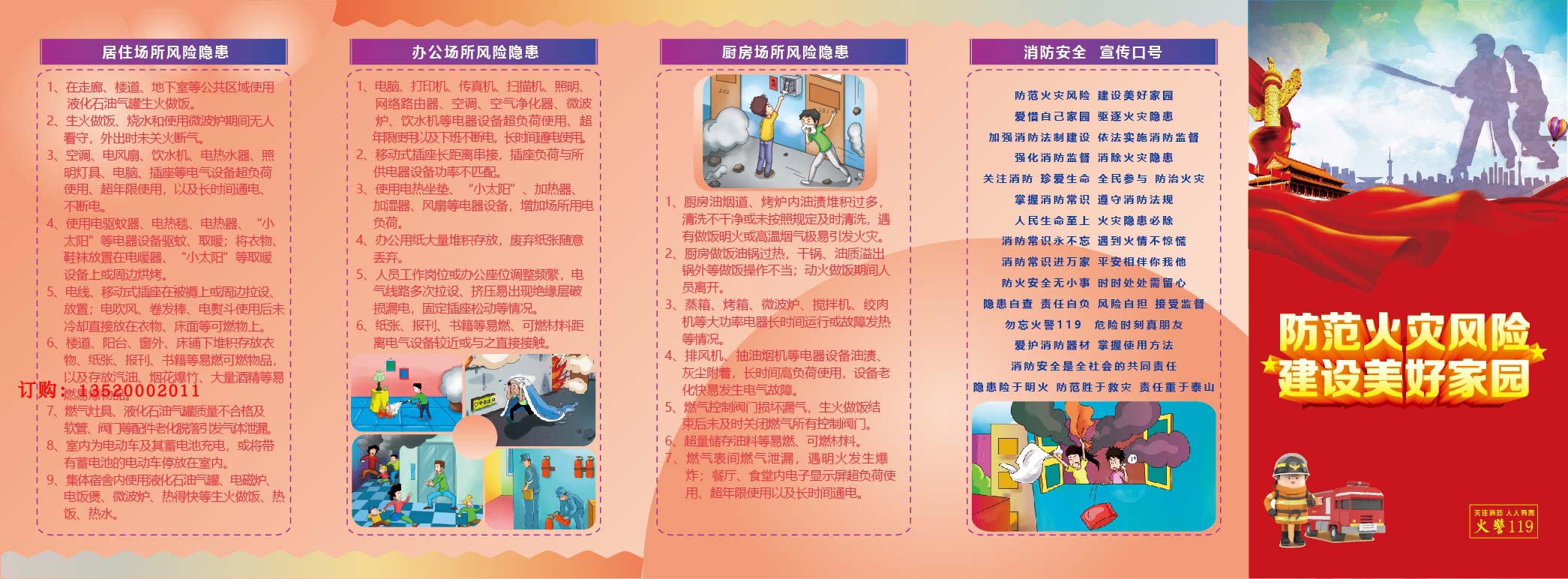 119宣传日主题折页 建设美好家园 2025年消防月主题宣教折页 ZAZ0072 纸正反印刷 包发票 铜版 防范火灾风险