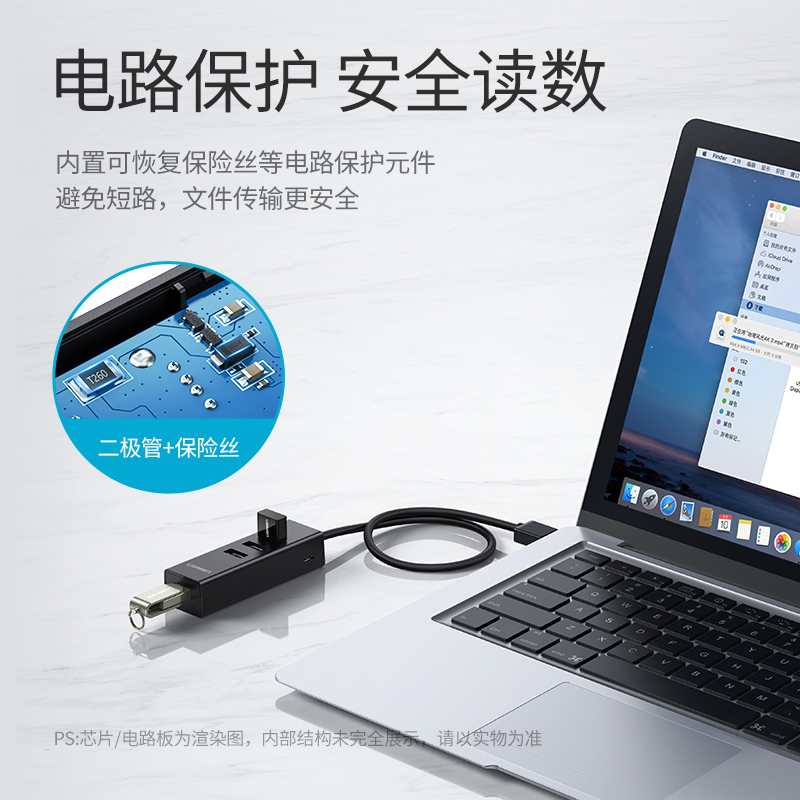 绿联usb拓展坞插头多口一分二集分线器typec延长线hub3.0外接u盘带供电转接头转换器笔记本电脑多接口扩展器