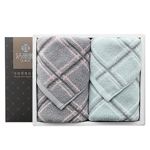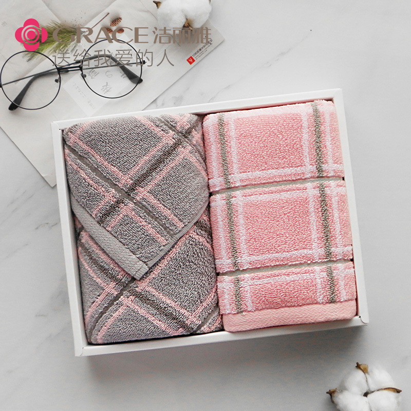 洁丽雅毛巾2条礼盒套装 纯棉吸水洗脸女面巾婚庆回礼活动团购定制